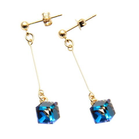 角度によって色々な表情に変化するスクエアガラスを飾ったイヤリング/ピアス。
