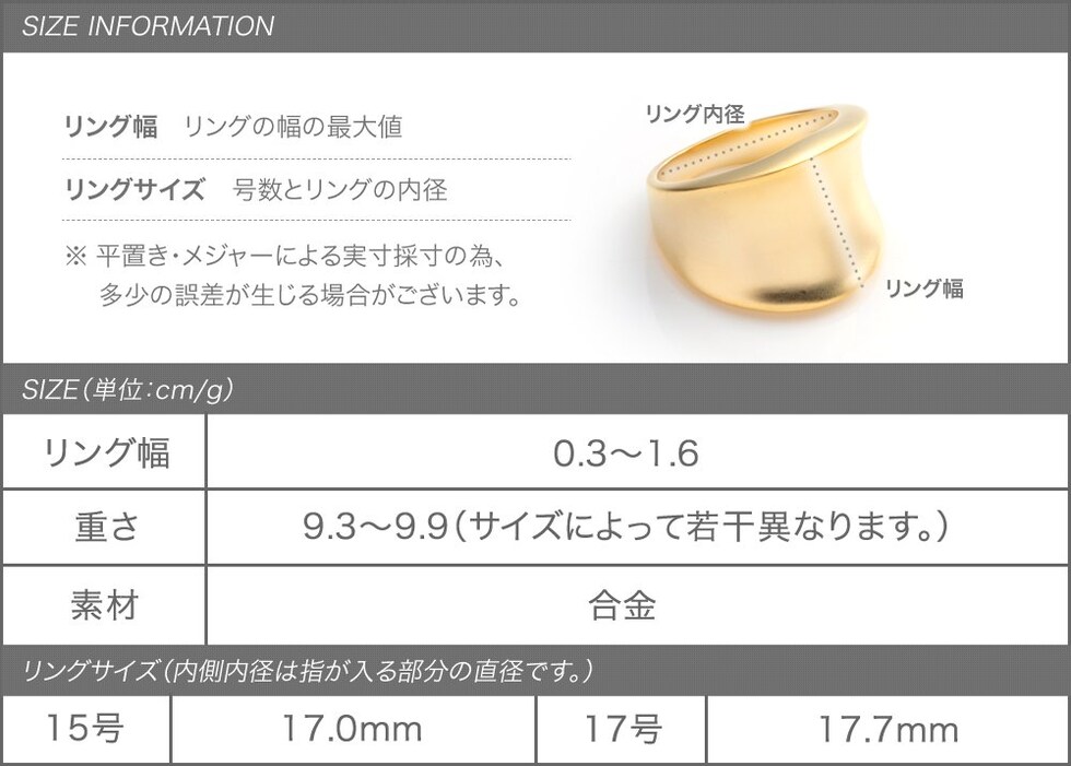 リング 指輪 レディース ワイドリング マット 艶消し つや消し 太い シェイプライン cream dot ゆうパケット [ゴールド_15号]