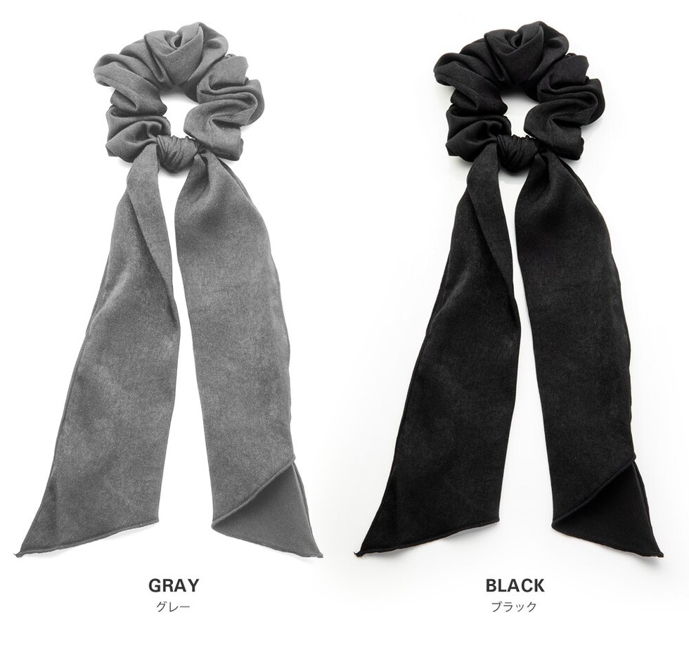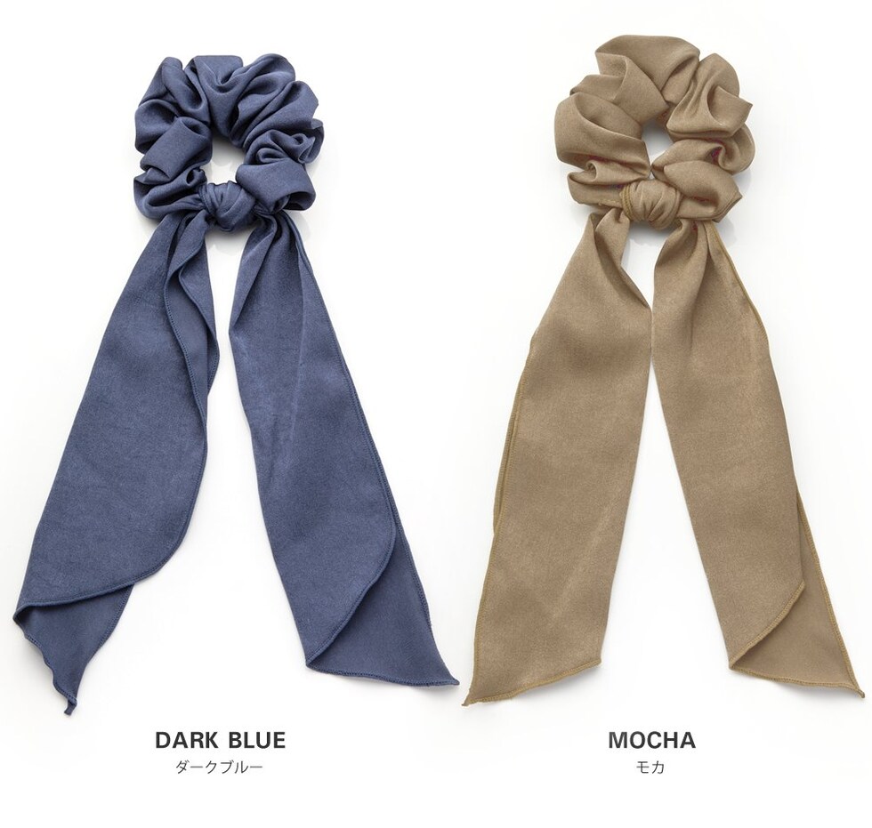 ヘアアクセサリー レディース シュシュ リボン 2way 取り外し ファッション小物 スカーフ サテン調 ブラック cream dot ゆうパケット [モカ_ワンサイズ]