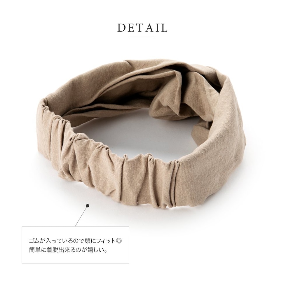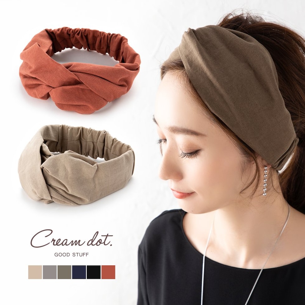 ヘアアクセサリー レディース ヘアターバン ヘアバンド 幅広 クロス ツイスト ワイド リネン レーヨン テラコッタ cream dot ゆうパケット [ベージュ_ワンサイズ]