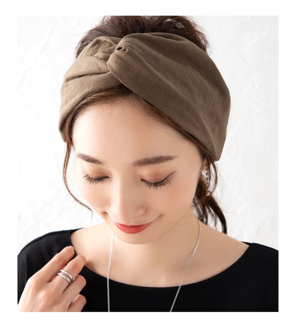 シックなカラーリングで大人っぽく身につけられるツイストクロスターバン。