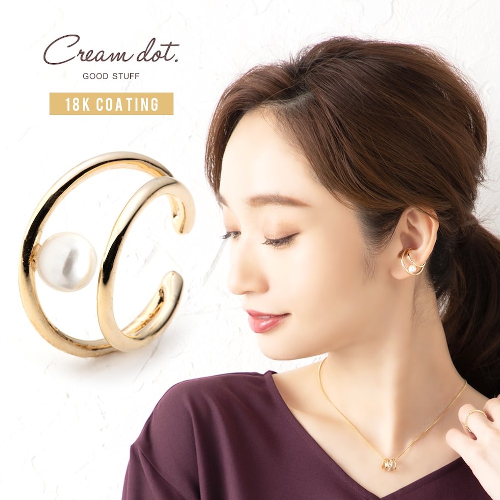 イヤーカフ レディース イヤーカフ イヤカフ 片耳用 メタル パール 三日月 ダブルライン cream dot ゆうパケット [ゴールド_ワンサイズ]