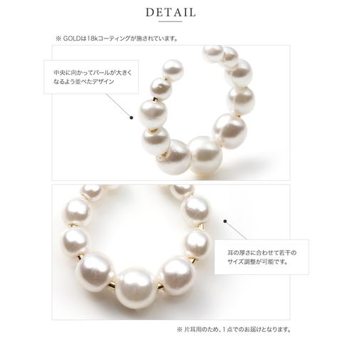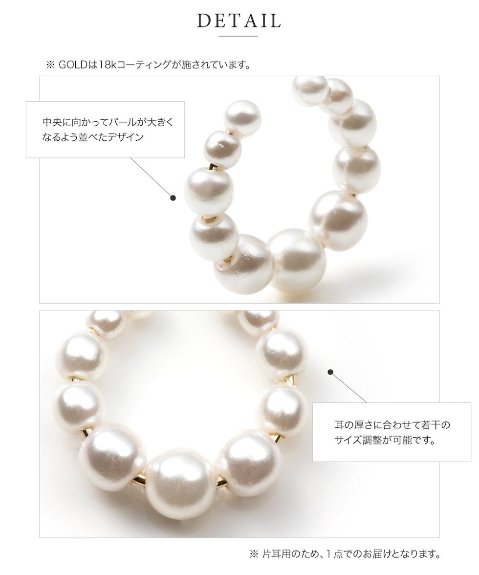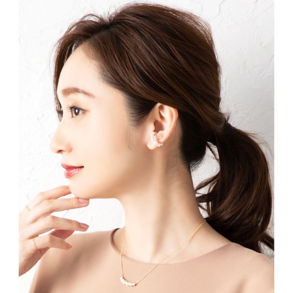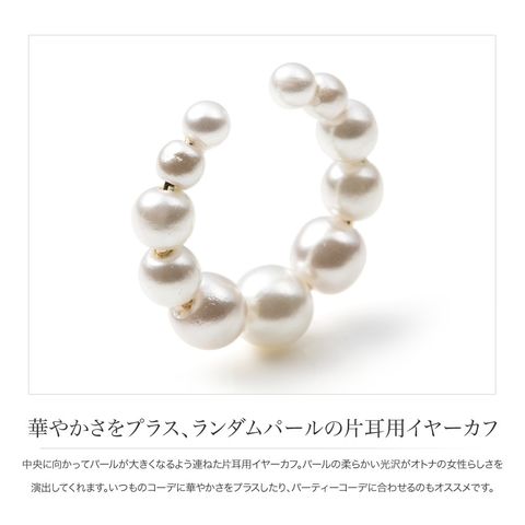 中央に向かってパールが大きくなるよう連ねた片耳用イヤーカフ。