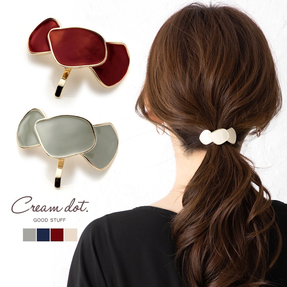 ヘアアクセサリー レディース ポニーフック ヘアフック ヘアカフス ヘアゴム 変形 オーバル 艶 花びら cream dot ゆうパケット [ワイン_ワンサイズ]