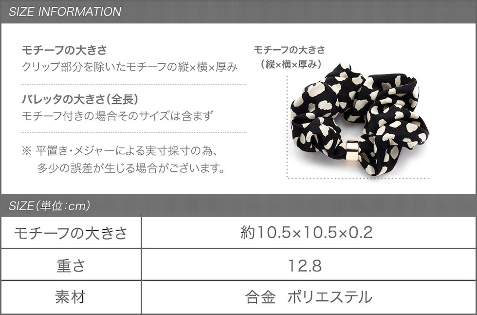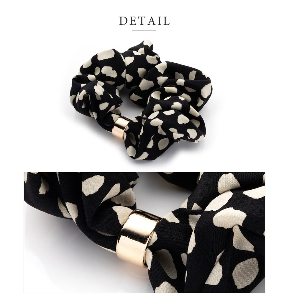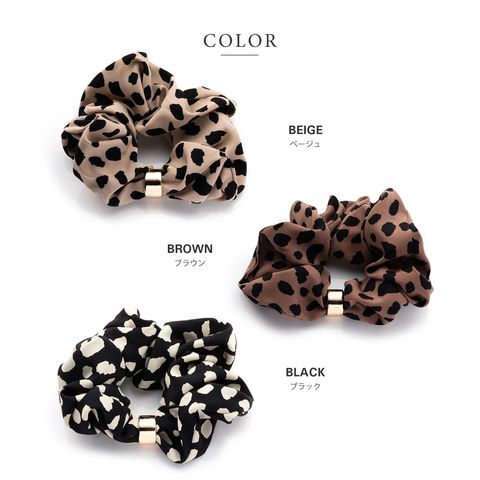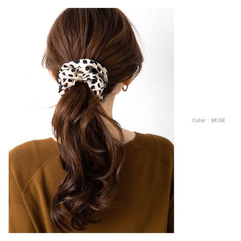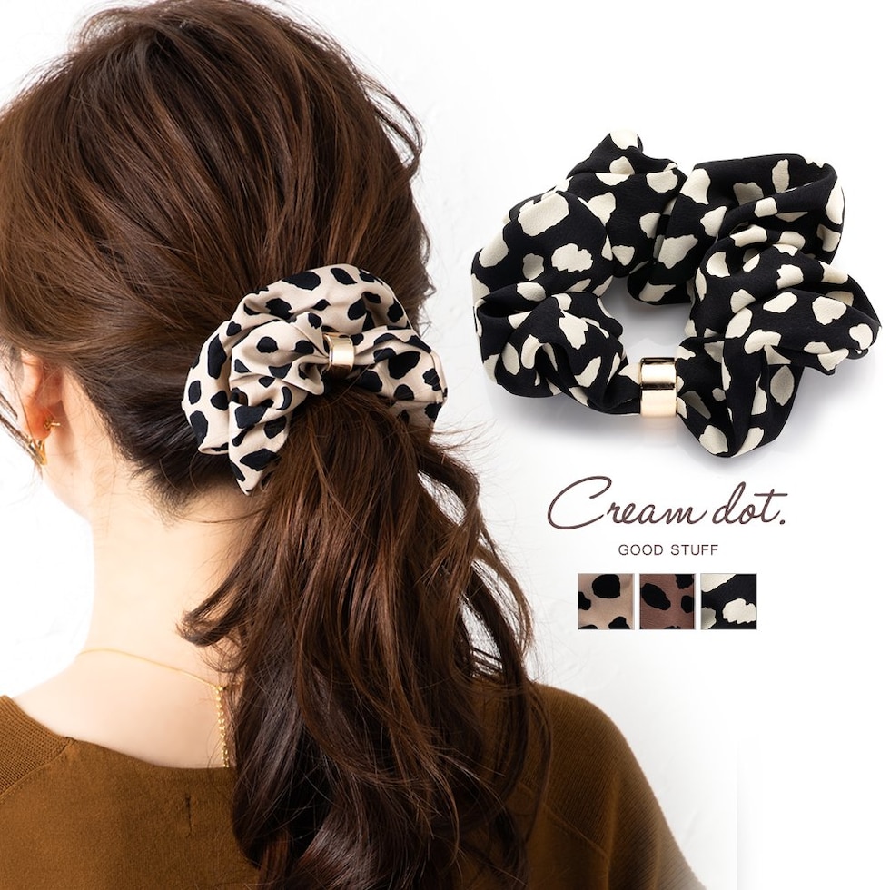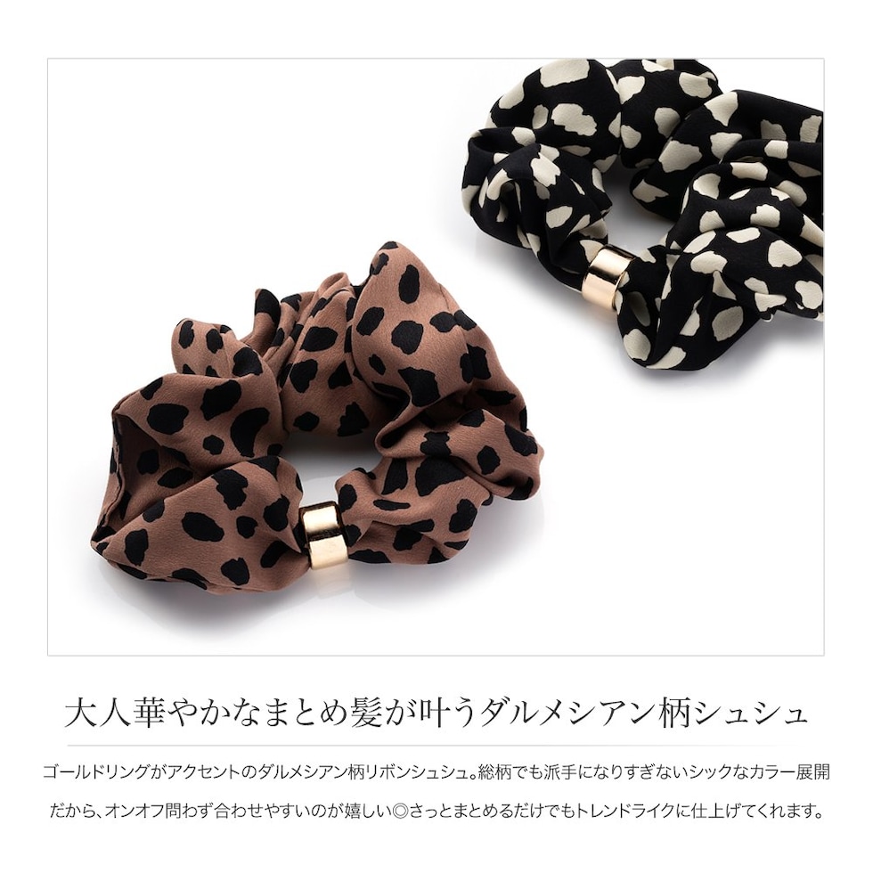 ヘアアクセサリー レディース シュシュ 軽い ボリューム ダルメシアン柄 総柄 メタル 小物 ファッション雑貨 ブラック cream dot ゆうパケット [ブラウン_ワンサイズ]