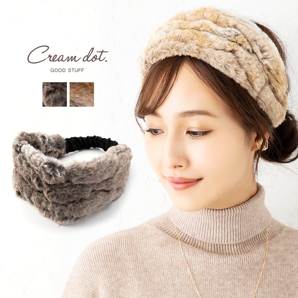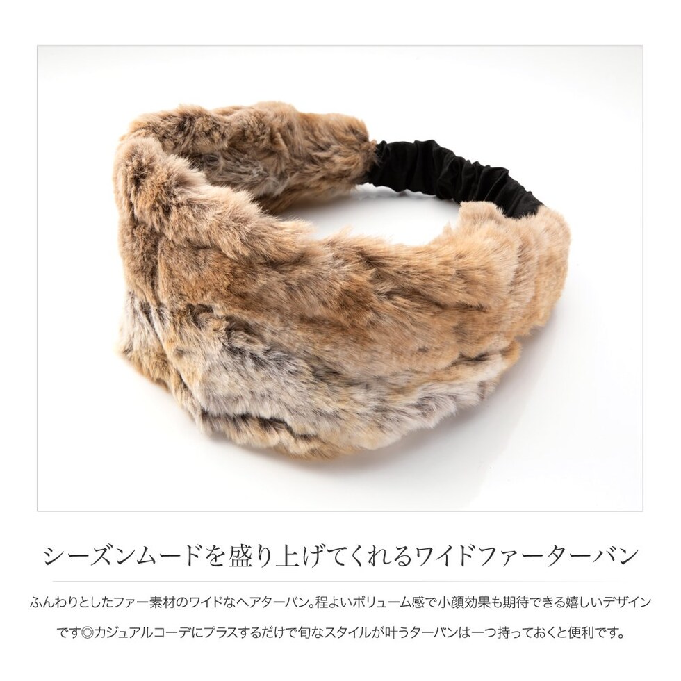 ヘアアクセサリー レディース ヘアターバン ヘアバンド 幅広 ファー ワイド エコファー フェイクファー ボリューム cream dot ゆうパケット [キャメル_ワンサイズ]