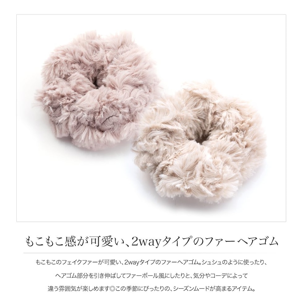 もこもこのフェイクファーが可愛い、2wayタイプのファーヘアゴム。