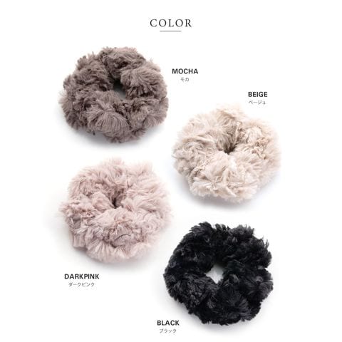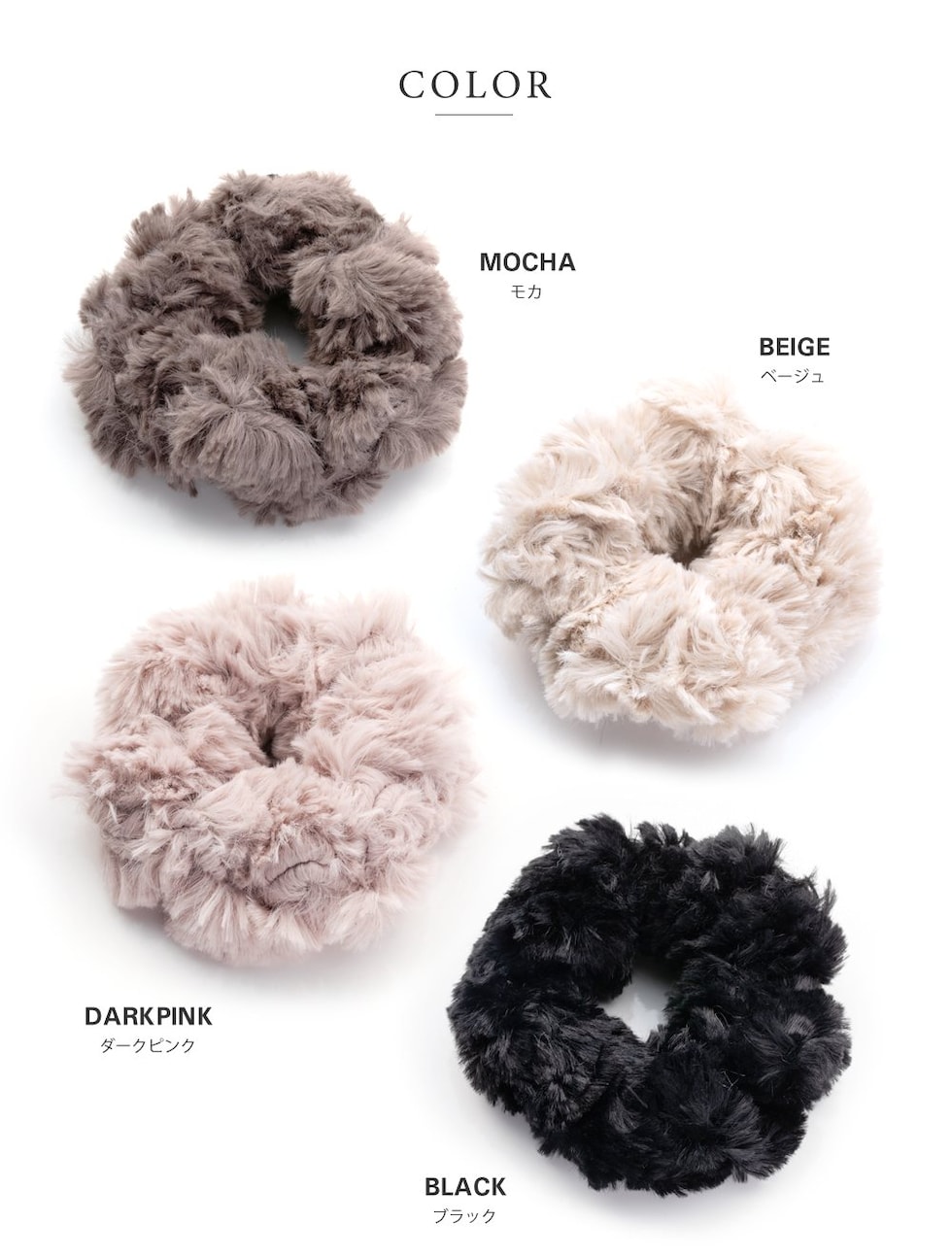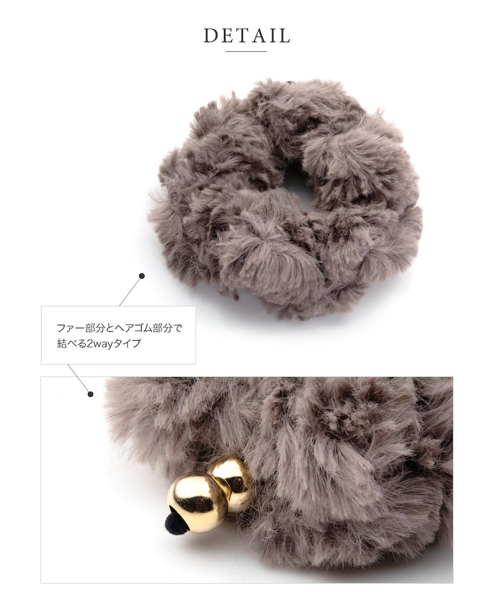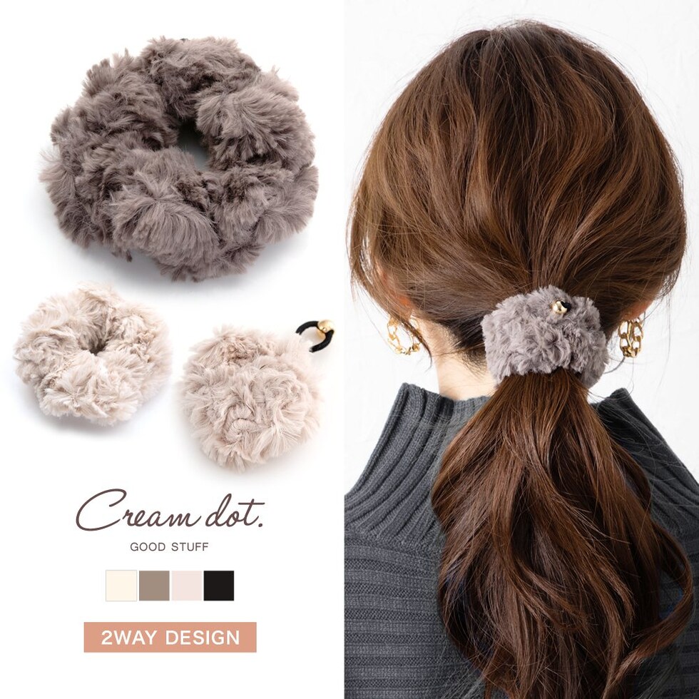 ヘアアクセサリー レディース ヘアゴム シュシュ 2way ファー ファーボール モカ cream dot ゆうパケット [ブラック_ワンサイズ]