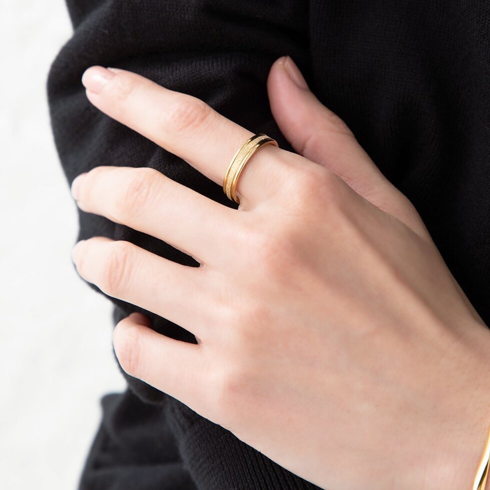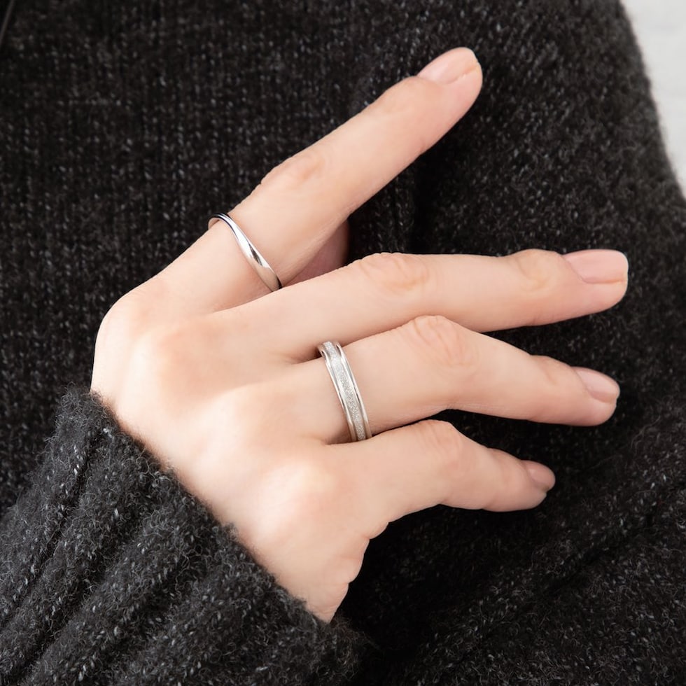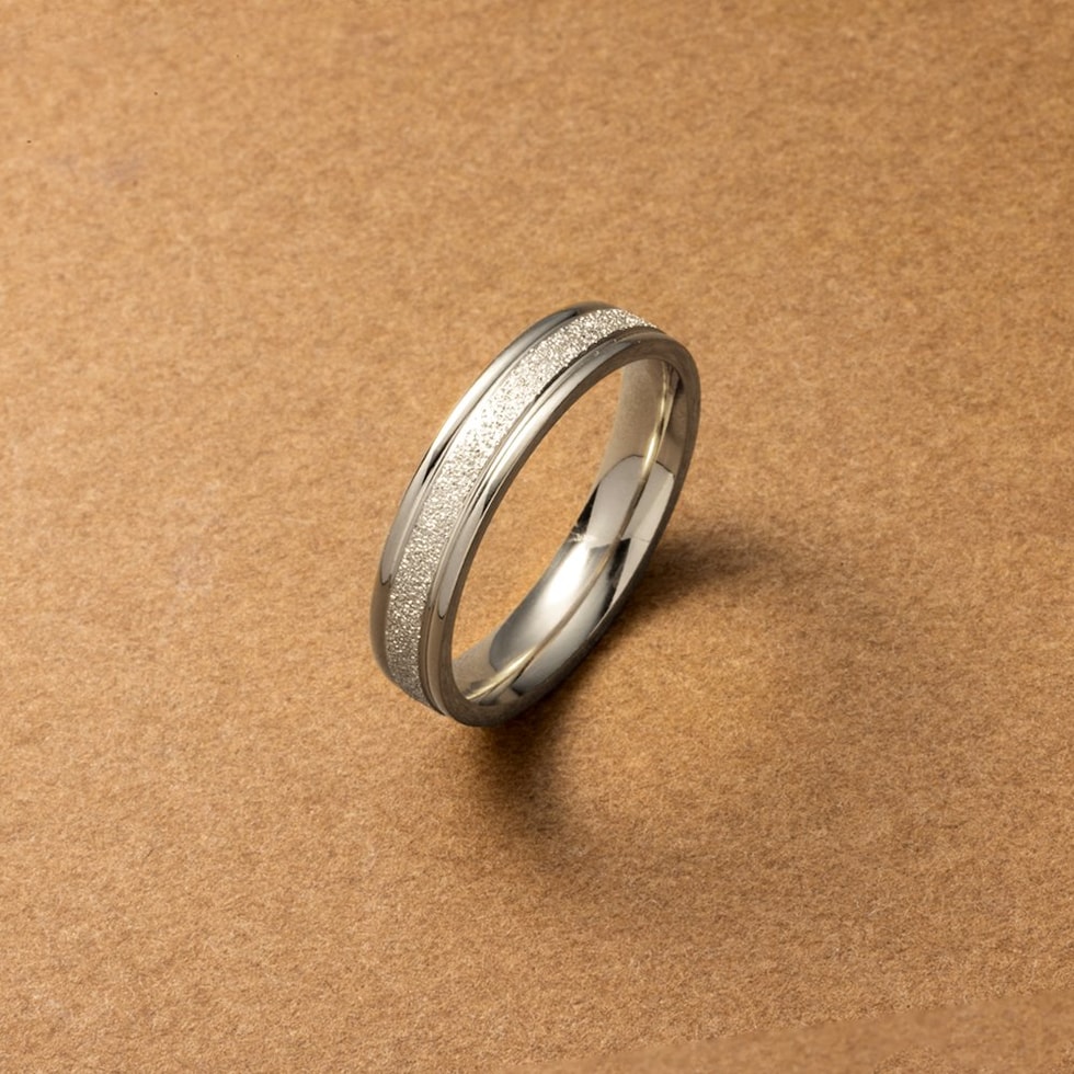 中央にライン状に光を反射して煌めくスターダスト加工を施したリング。錆びにくく傷に強いステンレス製で、長時間の着用も安心の低アレルギー素材です。12号~20号展開だから大切な方とペアで揃えても◎