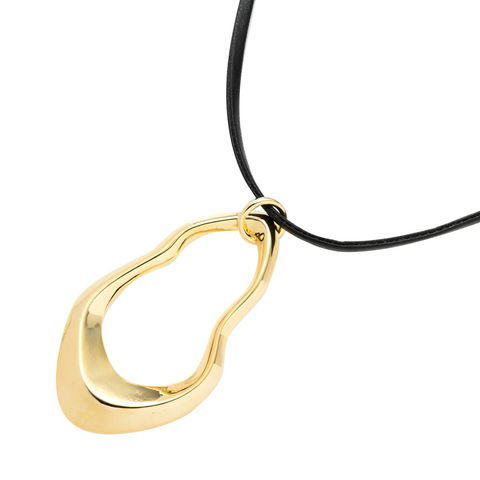 ネックレス 金属アレルギー ニッケルフリー レディース ロング 大ぶり レザーコード オーバル 変形 メタル 艶 マット 歪 puレザー cream dot ゆうパケット [A:ゴールドブラック_ワンサイズ]