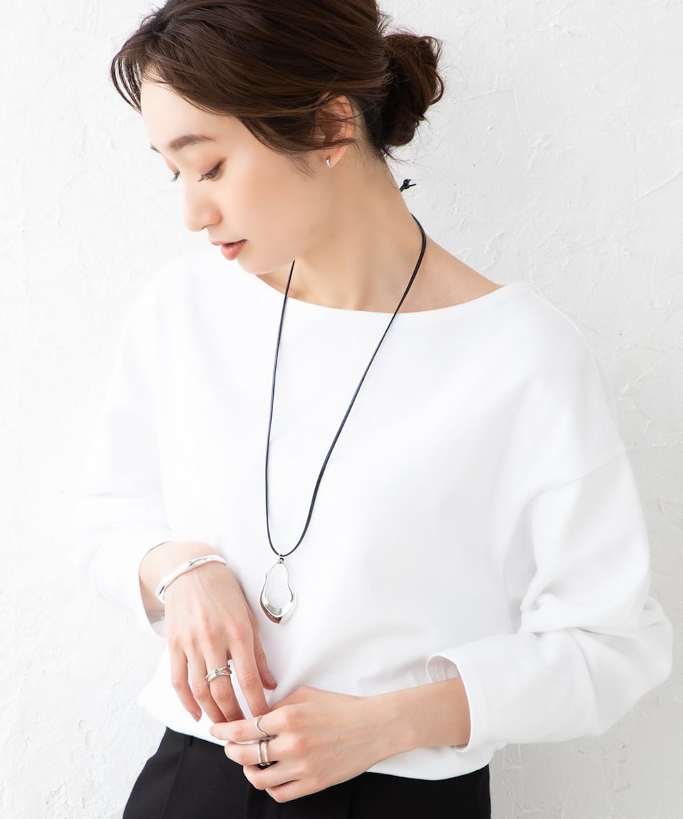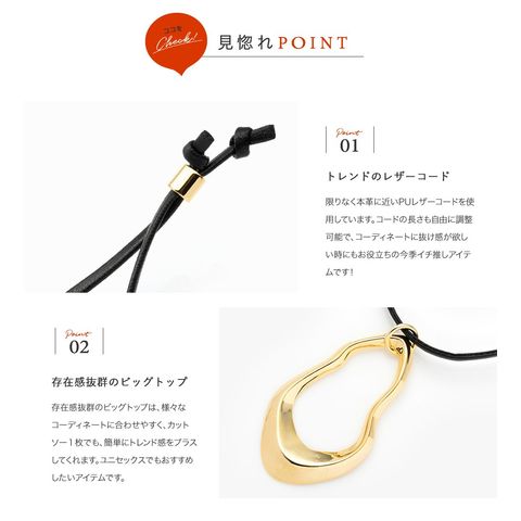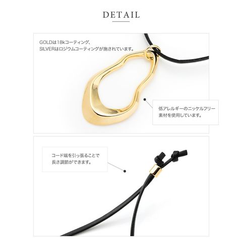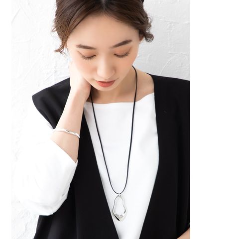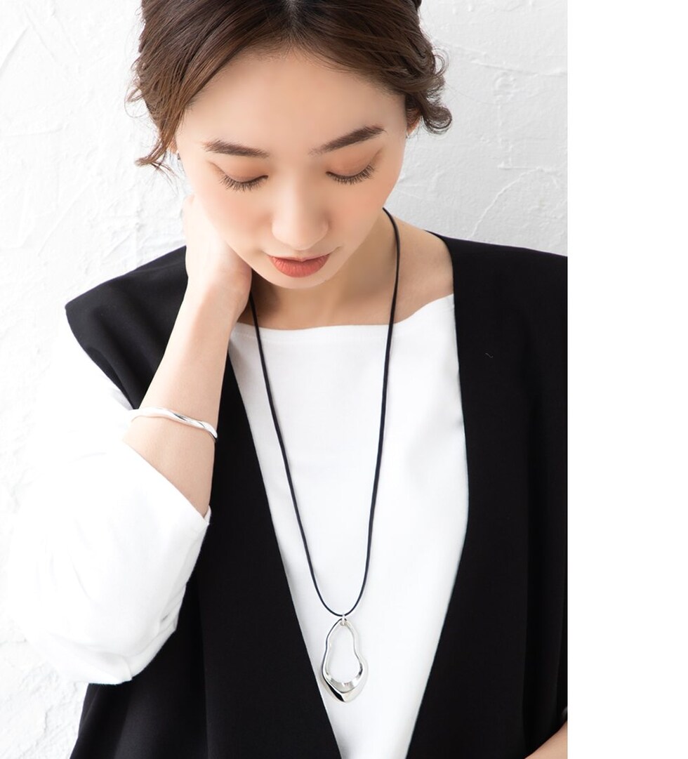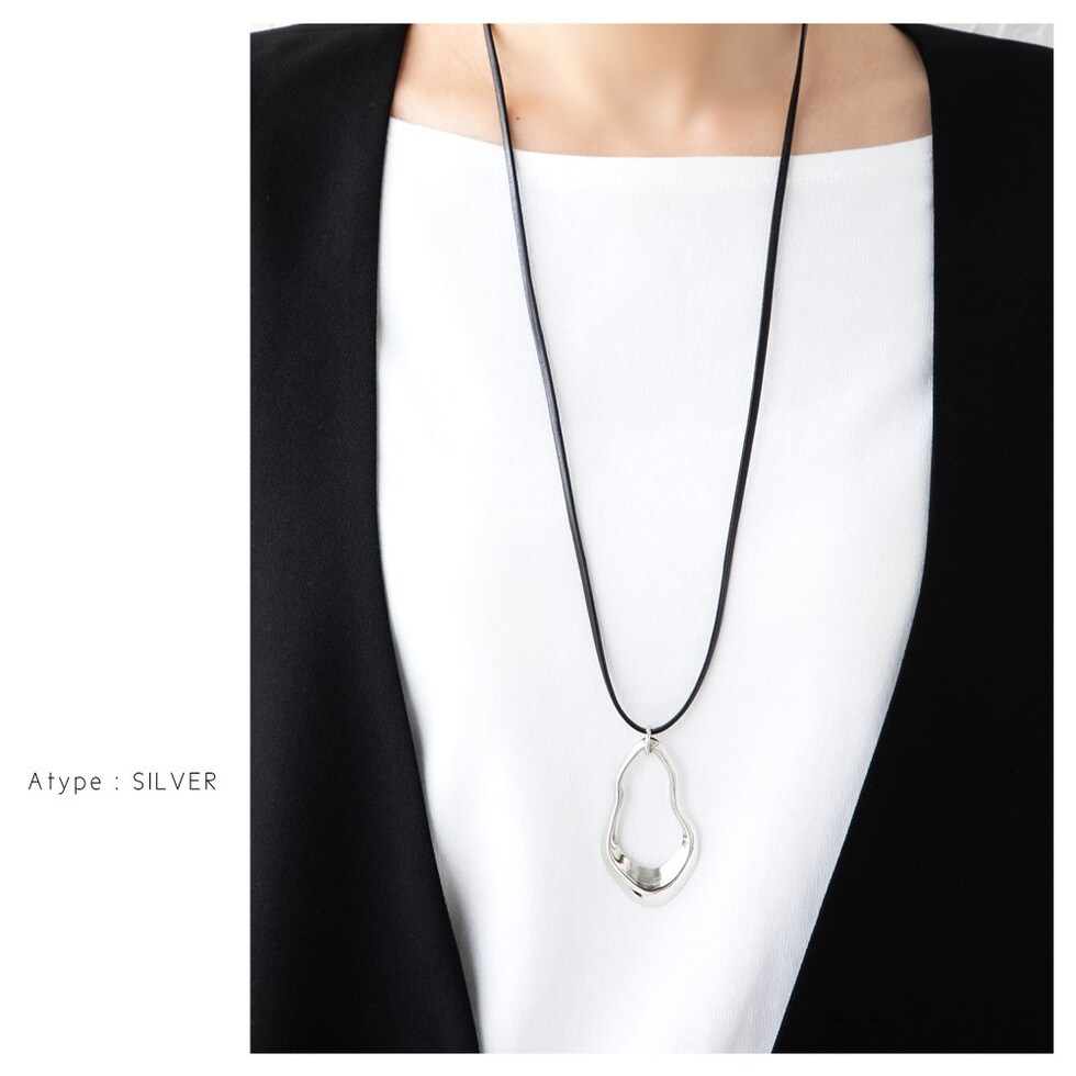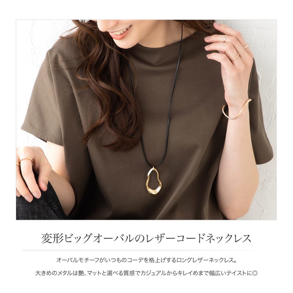 オーバルモチーフがいつものコーデを格上げするロングレザーネックレス。