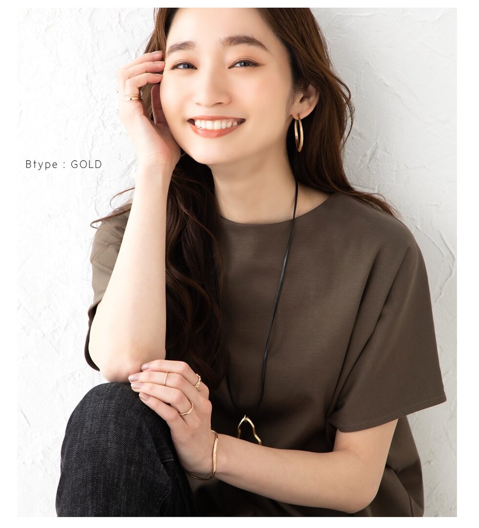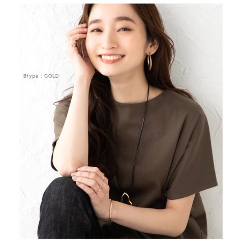 大きめのメタルは艶、マットと選べる質感でカジュアルからキレイめまで幅広いテイストに◎