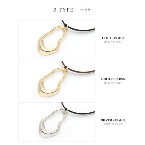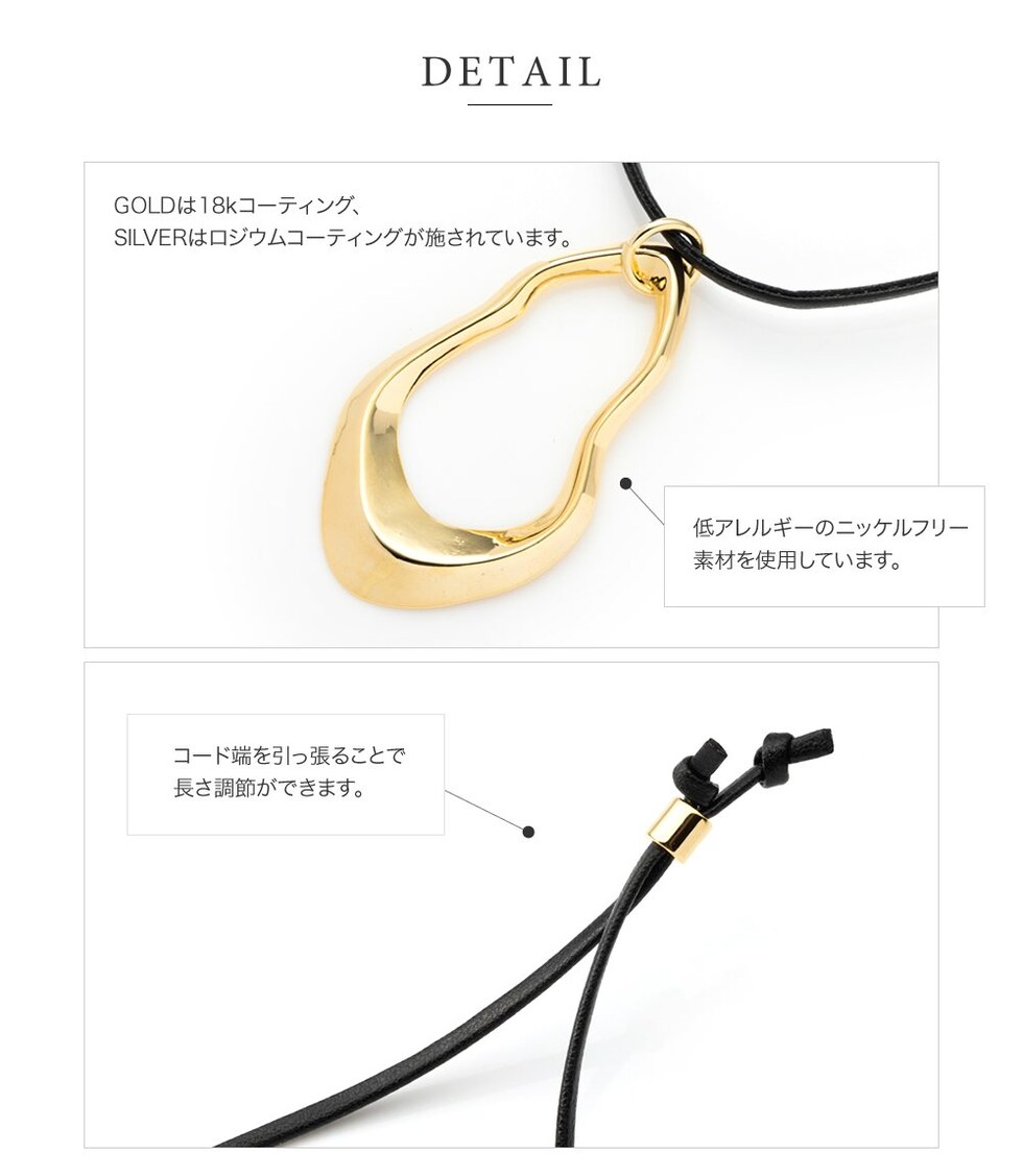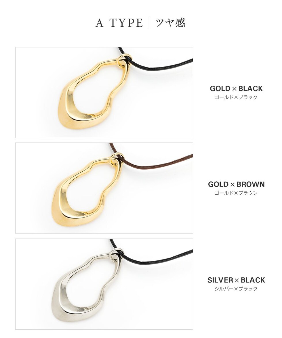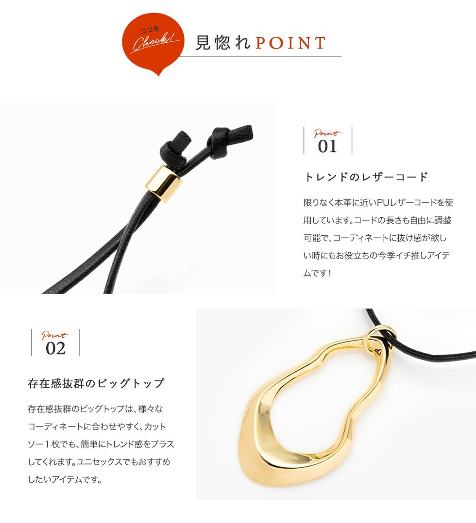 ネックレス 金属アレルギー ニッケルフリー レディース ロング 大ぶり レザーコード オーバル 変形 メタル 艶 マット 歪 puレザー cream dot ゆうパケット [B:ゴールドブラウン_ワンサイズ]