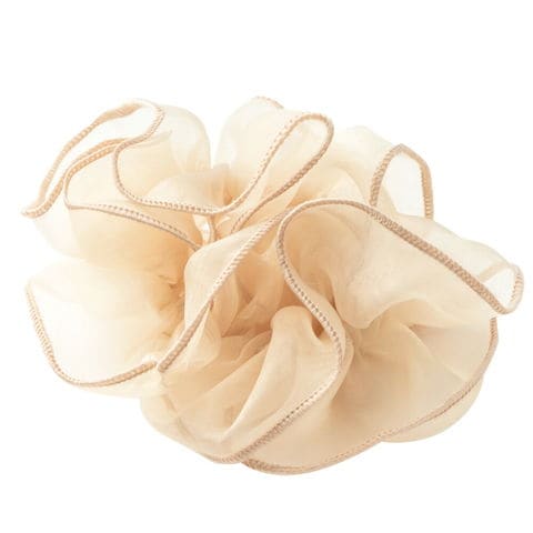 上品な透け感のオーガンジー生地にメリハリパイピングを施した大人可愛いシアーオーガンジーシュシュ。程よく広がるボリューム感で女性らしく華やかに仕上がります。デイリーは勿論、ドレスアップスタイルにも◎