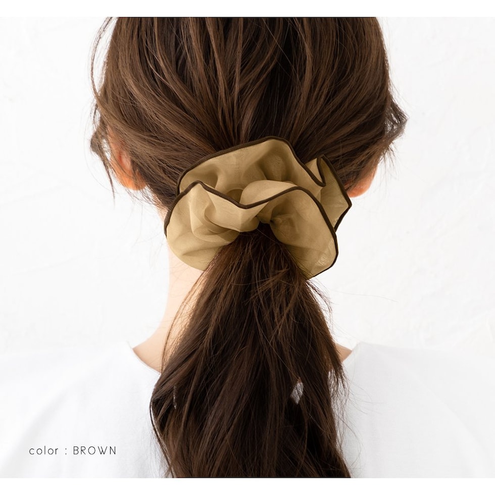 ヘアアクセサリー レディース シュシュ 軽い ボリューム シアーオーガンジー パイピング 縁どり ヘアゴム 透け感 髪留め まとめ髪 黒 cream dot ゆうパケット [ブラウン_ワンサイズ]