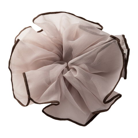 上品な透け感のオーガンジー生地にメリハリパイピングを施した大人可愛いシアーオーガンジーシュシュ。程よく広がるボリューム感で女性らしく華やかに仕上がります。デイリーは勿論、ドレスアップスタイルにも◎