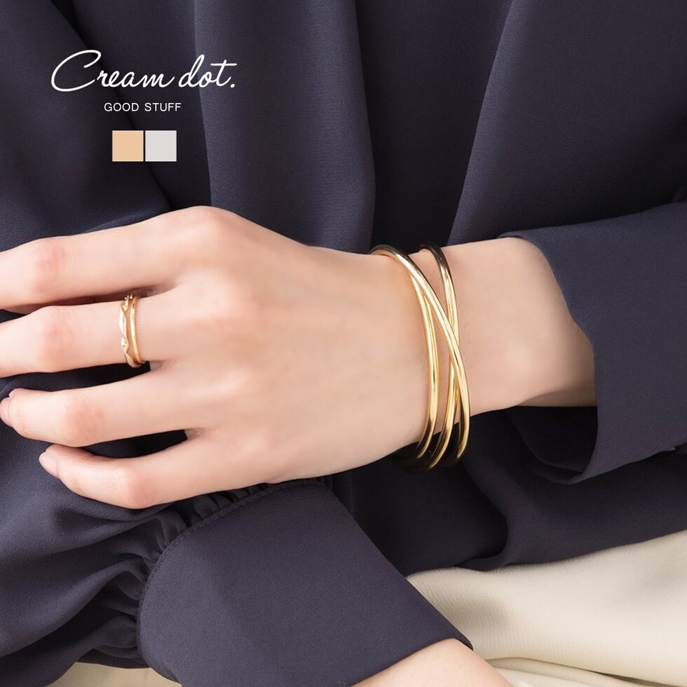 バングル レディース クロス 3連 重なり ワイド 太め メタル cream dot ゆうパケット [シルバー_ワンサイズ]