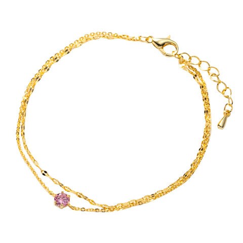 ブレスレット レディース キュービックジルコニア 一粒ビジュー ペタルチェーン あずきチェーン 2連 誕生月カラー 誕生色 レイヤード cream dot ゆうパケット [10月_ゴールド]