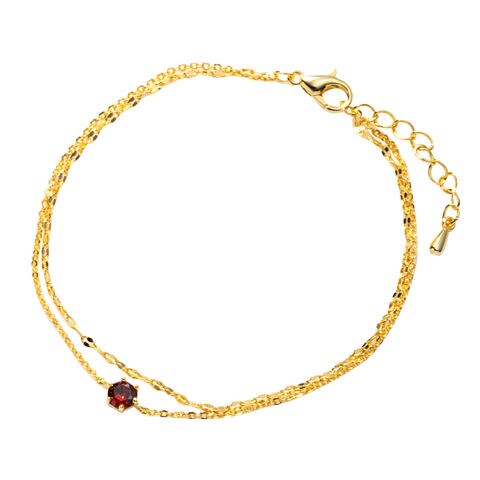 ブレスレット レディース キュービックジルコニア 一粒ビジュー ペタルチェーン あずきチェーン 2連 誕生月カラー 誕生色 レイヤード cream dot ゆうパケット [1月_ゴールド]