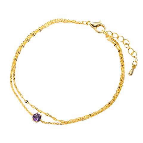 ブレスレット レディース キュービックジルコニア 一粒ビジュー ペタルチェーン あずきチェーン 2連 誕生月カラー 誕生色 レイヤード cream dot ゆうパケット [2月_ゴールド]