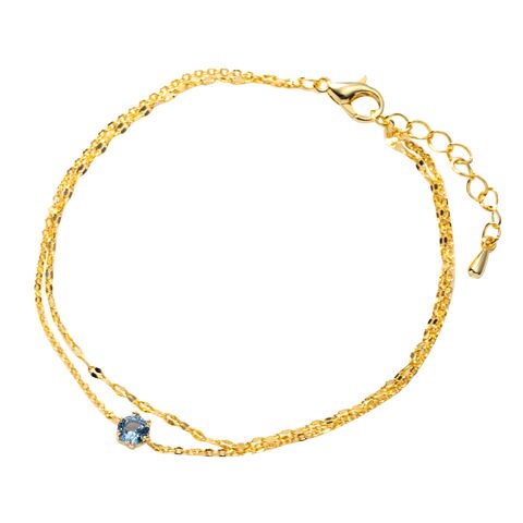 ブレスレット レディース キュービックジルコニア 一粒ビジュー ペタルチェーン あずきチェーン 2連 誕生月カラー 誕生色 レイヤード cream dot ゆうパケット [3月_ゴールド]