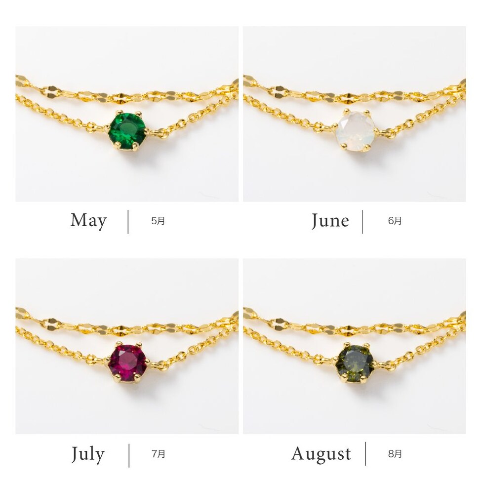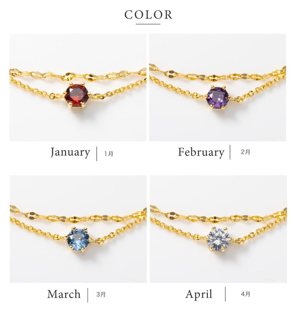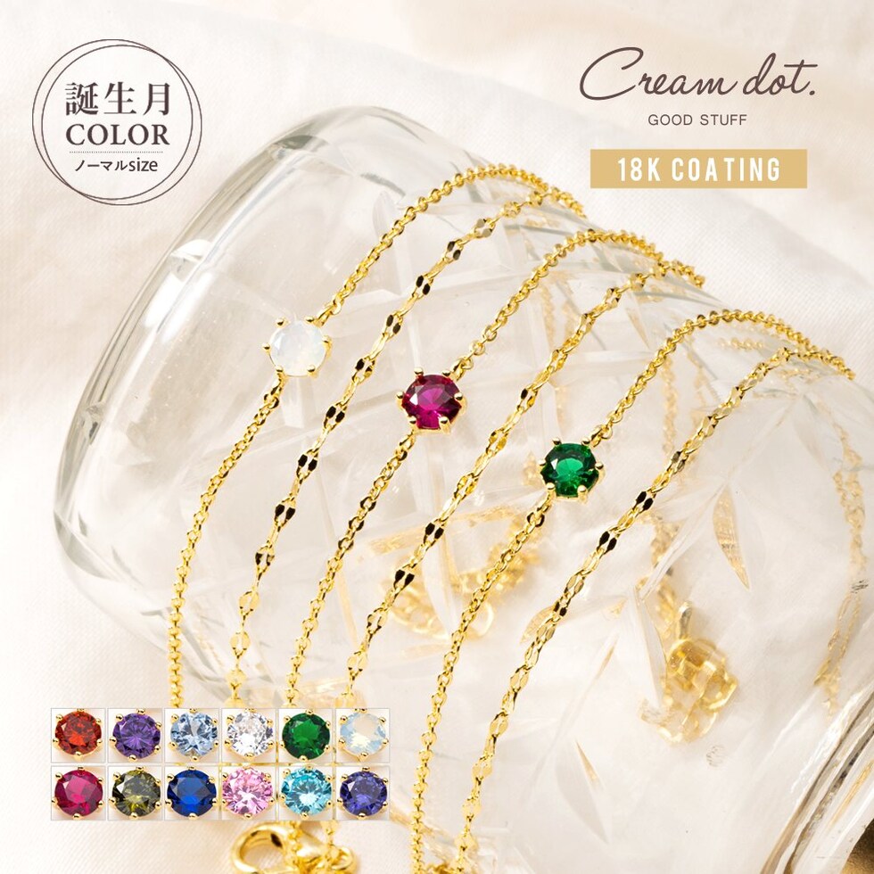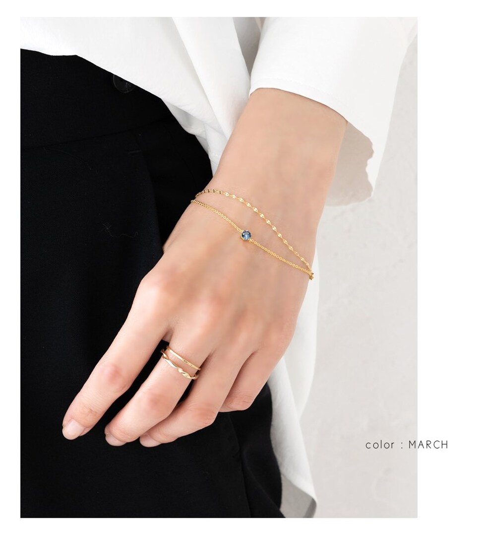 ブレスレット レディース キュービックジルコニア 一粒ビジュー ペタルチェーン あずきチェーン 2連 誕生月カラー 誕生色 レイヤード cream dot ゆうパケット [4月_ゴールド]