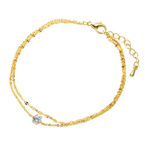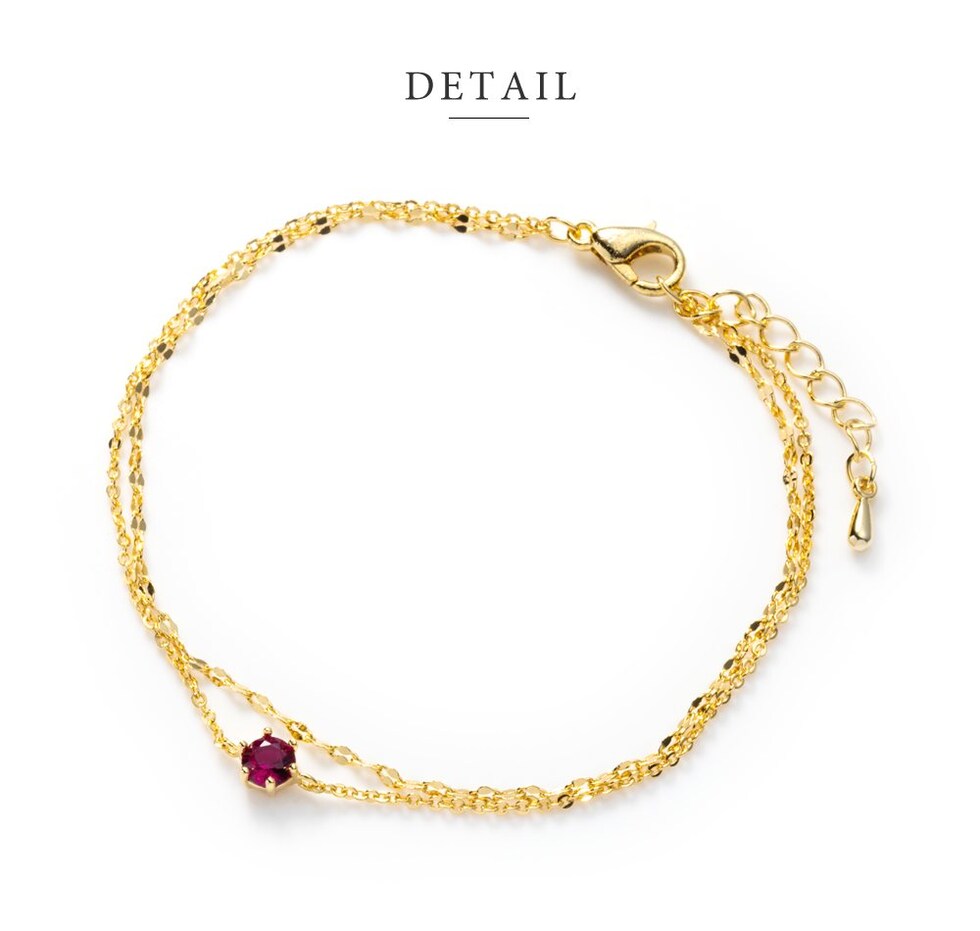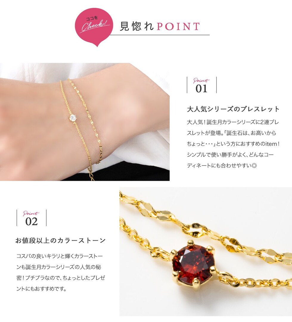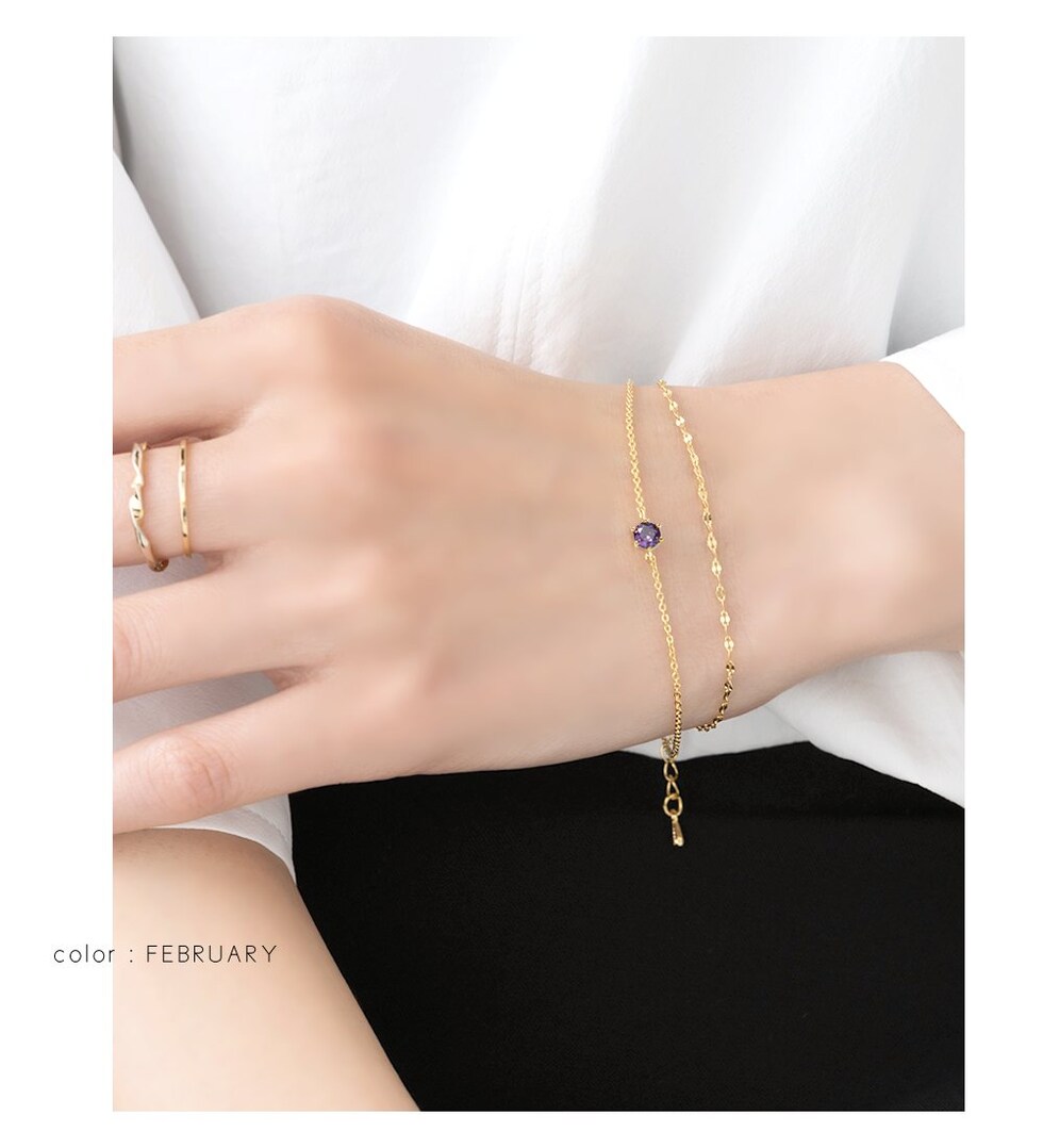 ブレスレット レディース キュービックジルコニア 一粒ビジュー ペタルチェーン あずきチェーン 2連 誕生月カラー 誕生色 レイヤード cream dot ゆうパケット [4月_ゴールド]