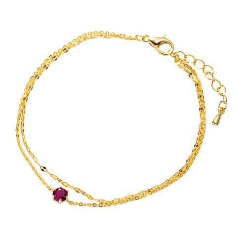 ブレスレット レディース キュービックジルコニア 一粒ビジュー ペタルチェーン あずきチェーン 2連 誕生月カラー 誕生色 レイヤード cream dot ゆうパケット [7月_ゴールド]