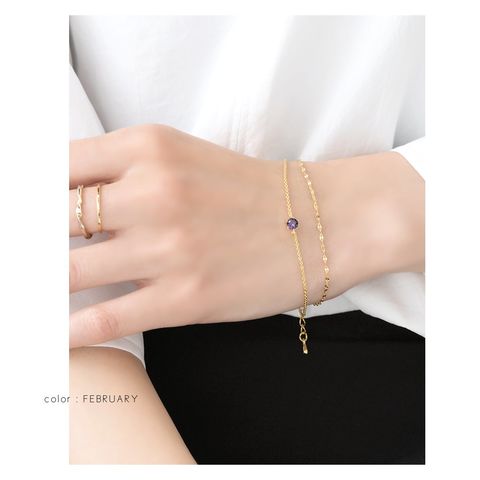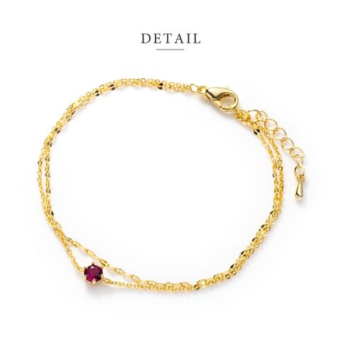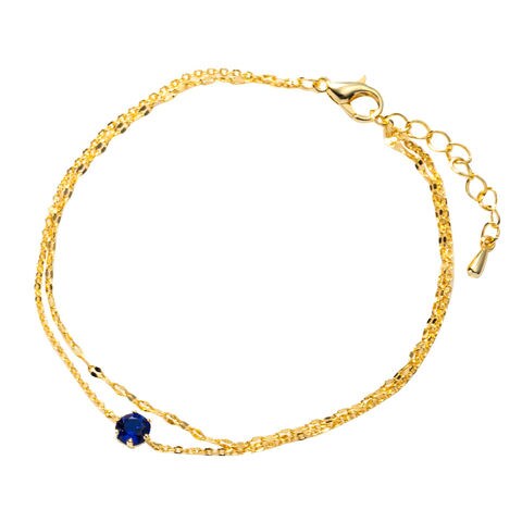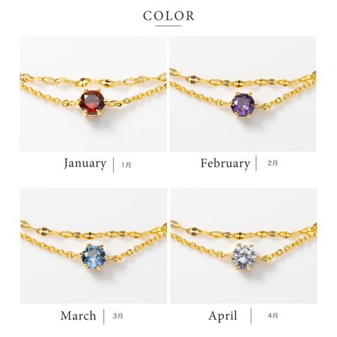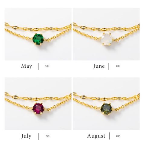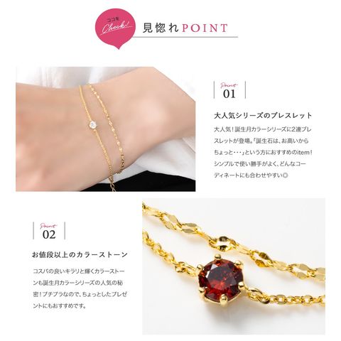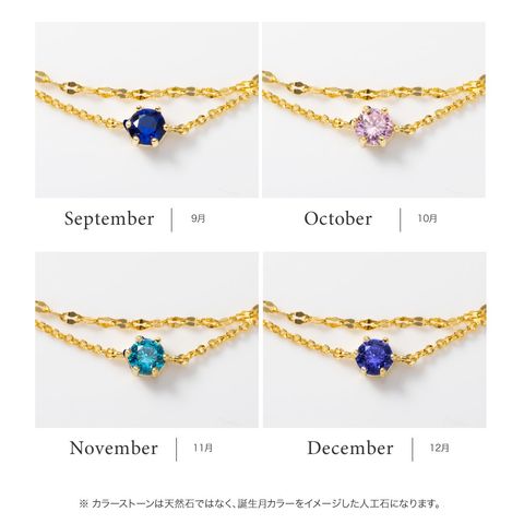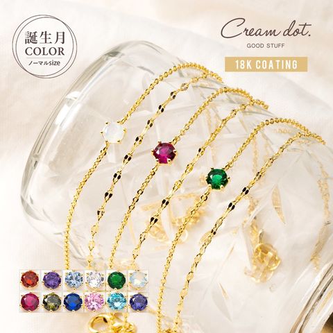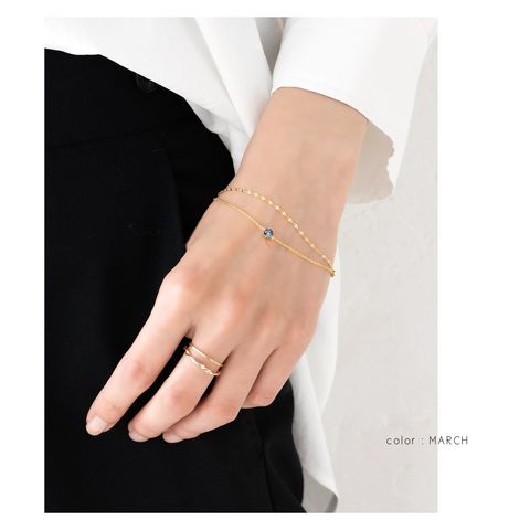 ブレスレット レディース キュービックジルコニア 一粒ビジュー ペタルチェーン あずきチェーン 2連 誕生月カラー 誕生色 レイヤード cream dot ゆうパケット [9月_ゴールド]