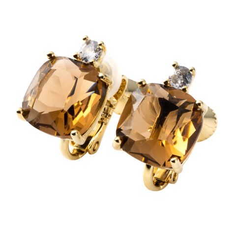 モダンなエレガンスをイメージした大粒スクエアクリスタルガラスは、さりげなくおしゃれな仕上がりで、どんなワードローブにも合わせやすい。石部分の爪留めは、クリアな煌めきを一層引き立ててくれます。