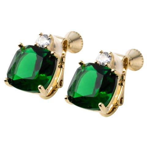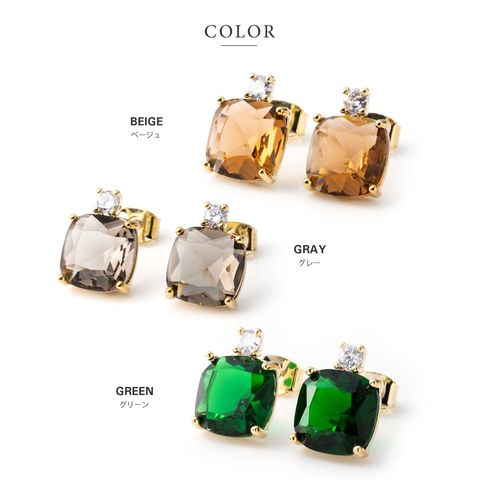 イヤリング ピアス レディース ポスト ネジ式 シリコンカバー スタッド ガラス 多面カット キュービックジルコニア スクエア 大粒 cream dot ゆうパケット [グリーン_イヤリング]
