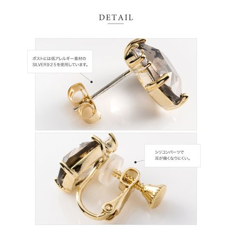 ポスト部分にアレルギーが出にくいとされるシルバー925を使用しています。体に優しく金属アレルギーの方でもご使用いただける仕様となっております。