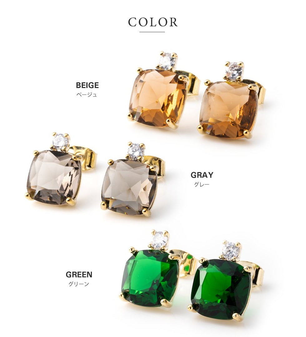 イヤリング ピアス レディース ポスト ネジ式 シリコンカバー スタッド ガラス 多面カット キュービックジルコニア スクエア 大粒 cream dot ゆうパケット [グレー_ピアス]