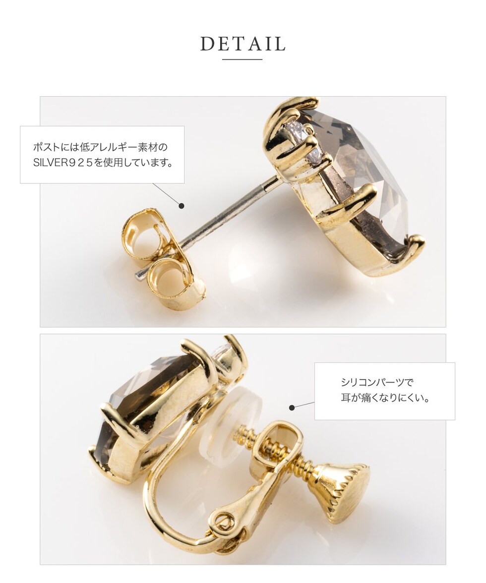 ポスト部分にアレルギーが出にくいとされるシルバー925を使用しています。体に優しく金属アレルギーの方でもご使用いただける仕様となっております。