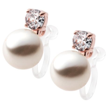 ビジューと艶めくパールを組み合わせた女性らしいピアス/イヤリング。小ぶりなサイジングとシンプルなデザインで耳元を華奢上品な雰囲気に仕上げてくれます。シーンを選ばず活躍してくれるひと品です。