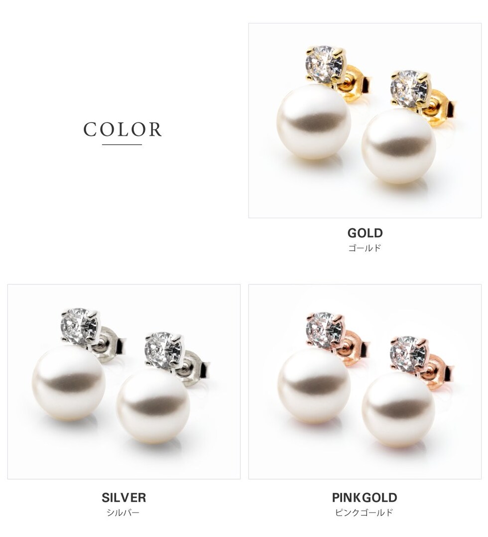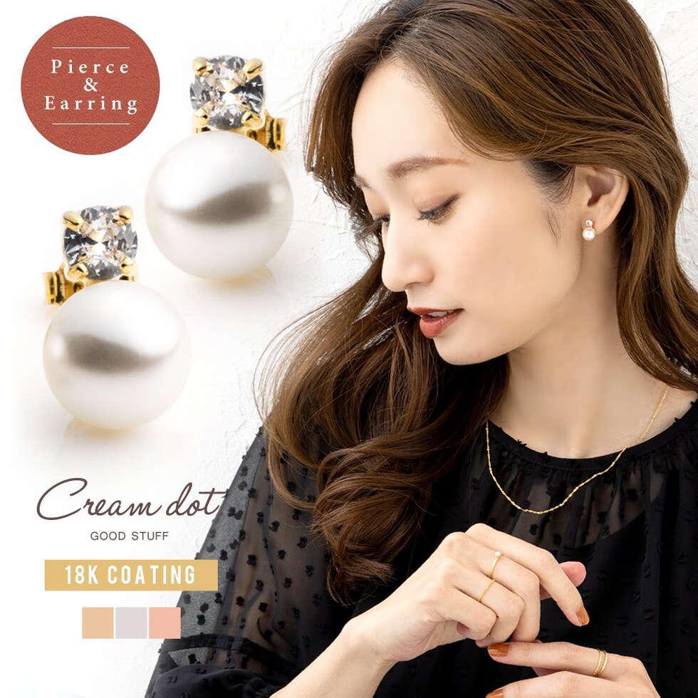 ピアス イヤリング レディース スタッド キュービックジルコニア 一粒ビジュー パール cream dot ゆうパケット [ゴールド_ピアス]