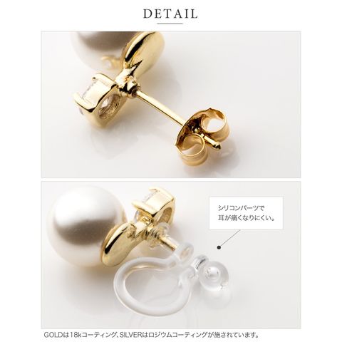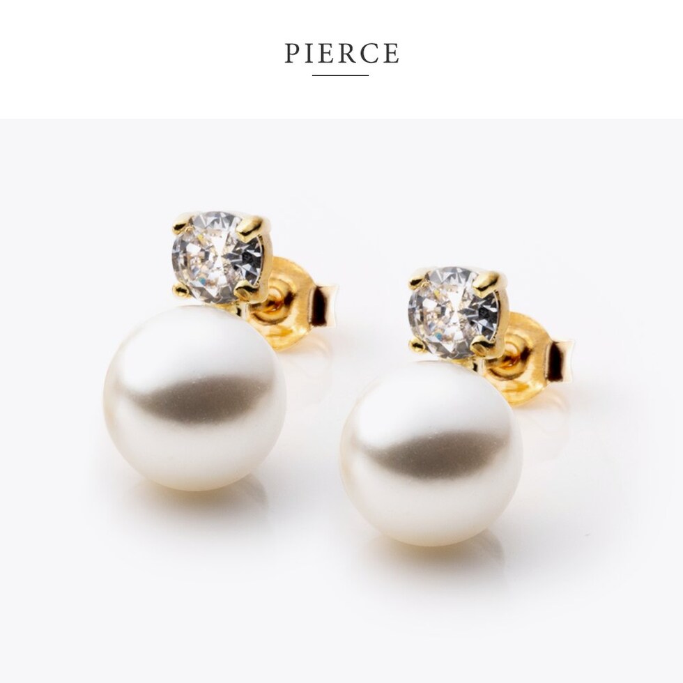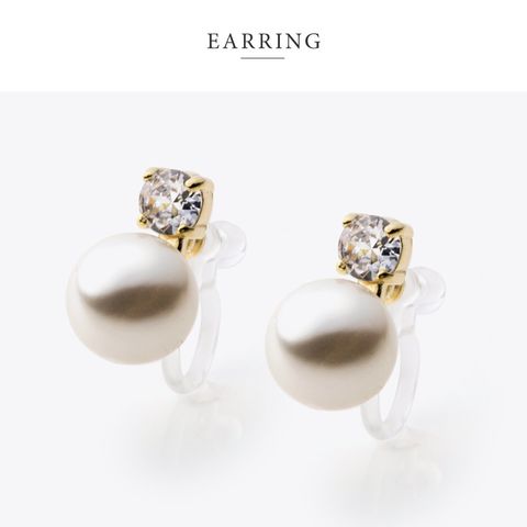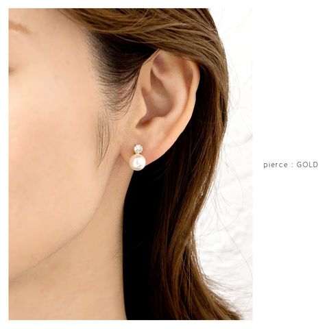 ビジューと艶めくパールを組み合わせた女性らしいピアス/イヤリング。小ぶりなサイジングとシンプルなデザインで耳元を華奢上品な雰囲気に仕上げてくれます。シーンを選ばず活躍してくれるひと品です。