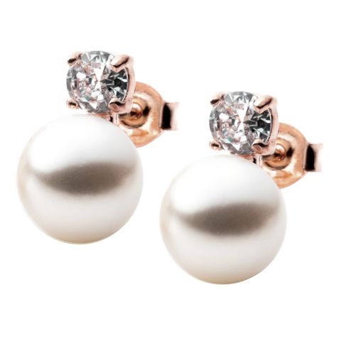 ピアス イヤリング レディース スタッド キュービックジルコニア 一粒ビジュー パール cream dot ゆうパケット [ピンクゴールド_ピアス]