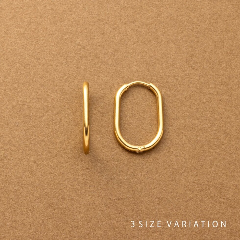 オーバル型のシンプルで身につけやすいステンレス製のキャッチレスピアス。サイズと色が選べる豊富なバリエーションと、トレンドに左右されないデザインは、シーンを選ばず使える優秀アイテムです◎錆びにくいステンレス製でデイリーに活躍しそう。