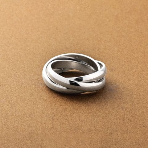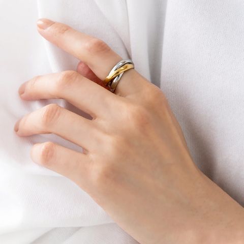 手元にモダンな存在感をプラスするトリプルツイストのリング。3つの大きめなメタルリングが重なったデザインが洗練された手元を演出してくます。錆びにくいステンレス製でデイリーに活躍しそう。