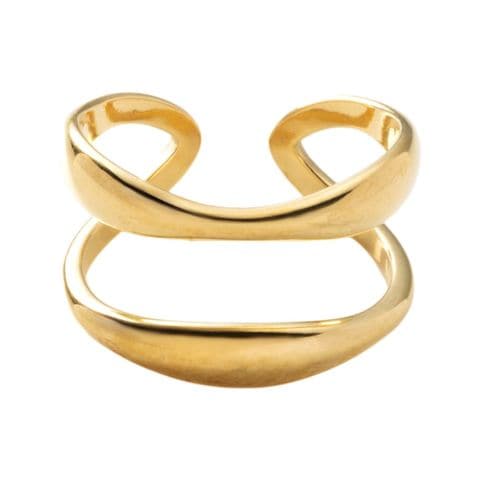 リング 指輪 ステンレス 金属アレルギー サージカルステンレス レディース つけっぱなし 変形 ダブルライン メタル cream dot ゆうパケット [ゴールド_12号]