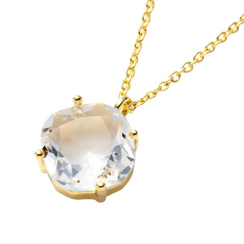 多面カットを施したきれい色な大粒クリスタルストーンが胸元で煌めくネックレス。ゴールドメタルのシンプルな4本の爪が輝きをより一層引き立ててくれます。シンプルコーデの差し色にオススメです◎