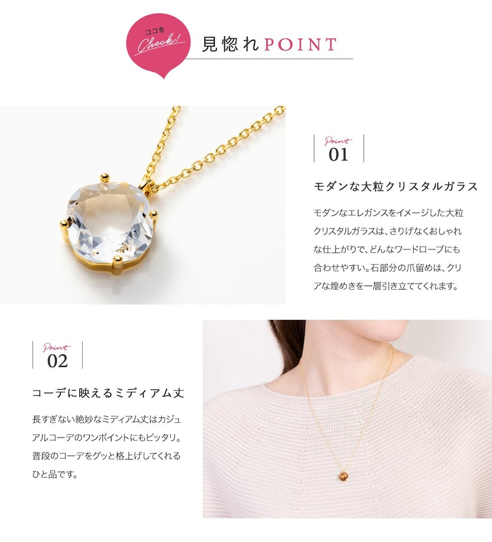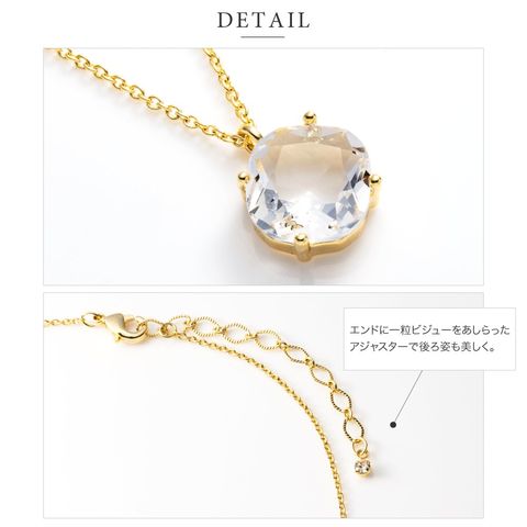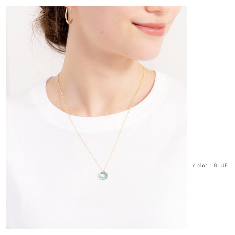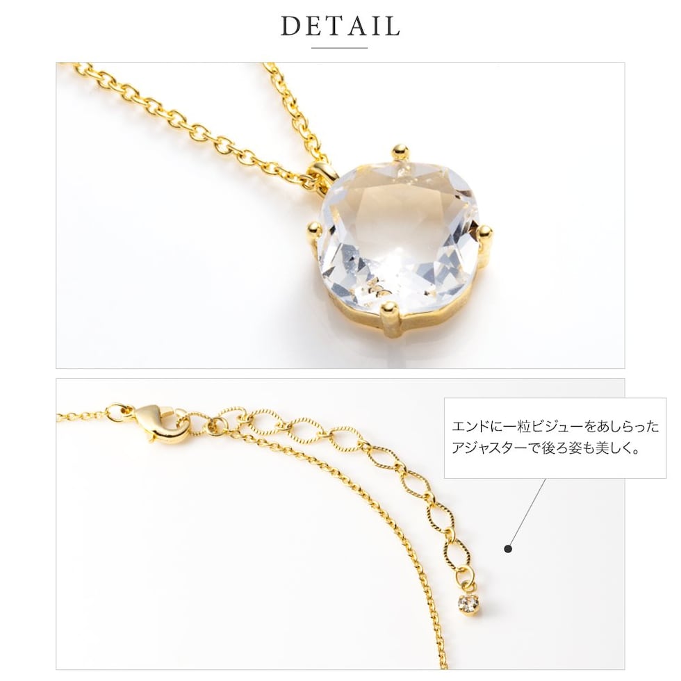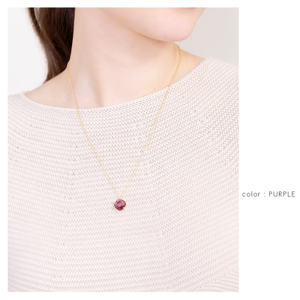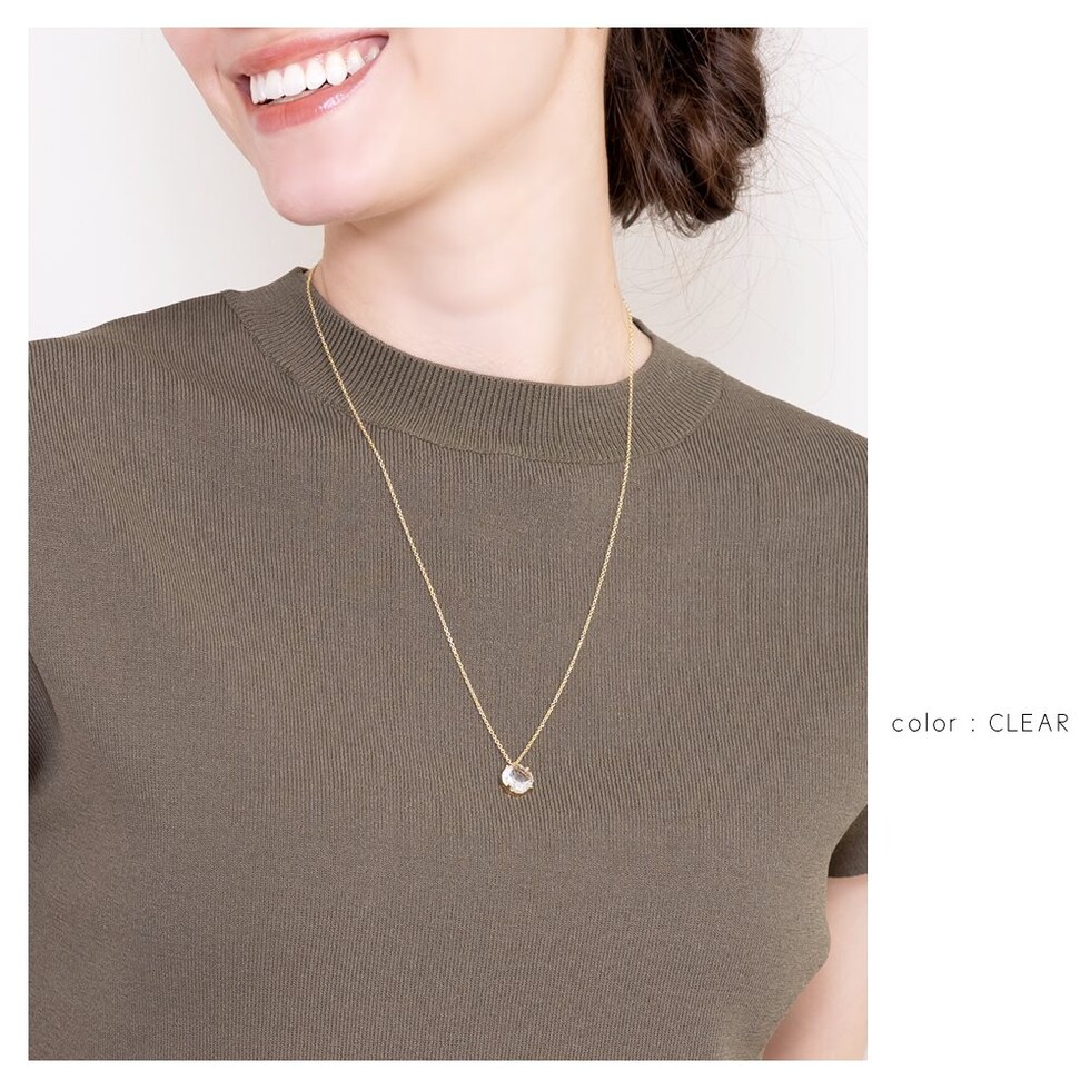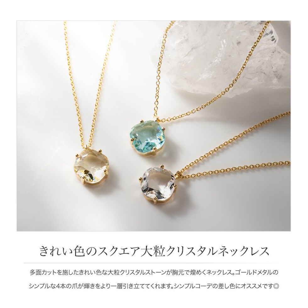 多面カットを施したきれい色な大粒クリスタルストーンが胸元で煌めくネックレス。ゴールドメタルのシンプルな4本の爪が輝きをより一層引き立ててくれます。シンプルコーデの差し色にオススメです◎
