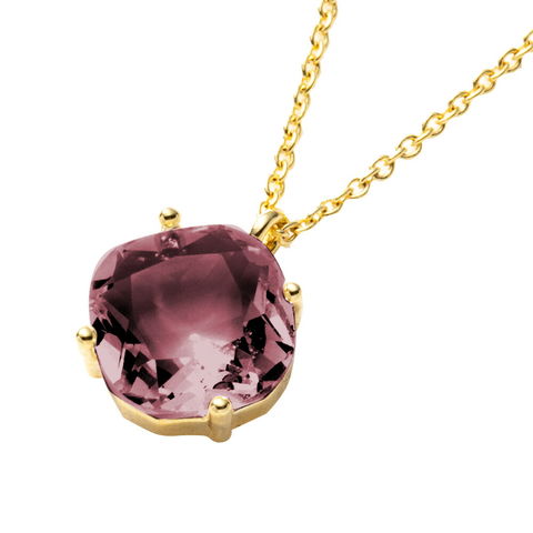 多面カットを施したきれい色な大粒クリスタルストーンが胸元で煌めくネックレス。ゴールドメタルのシンプルな4本の爪が輝きをより一層引き立ててくれます。シンプルコーデの差し色にオススメです◎