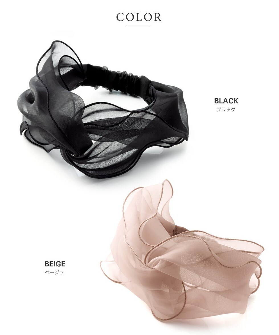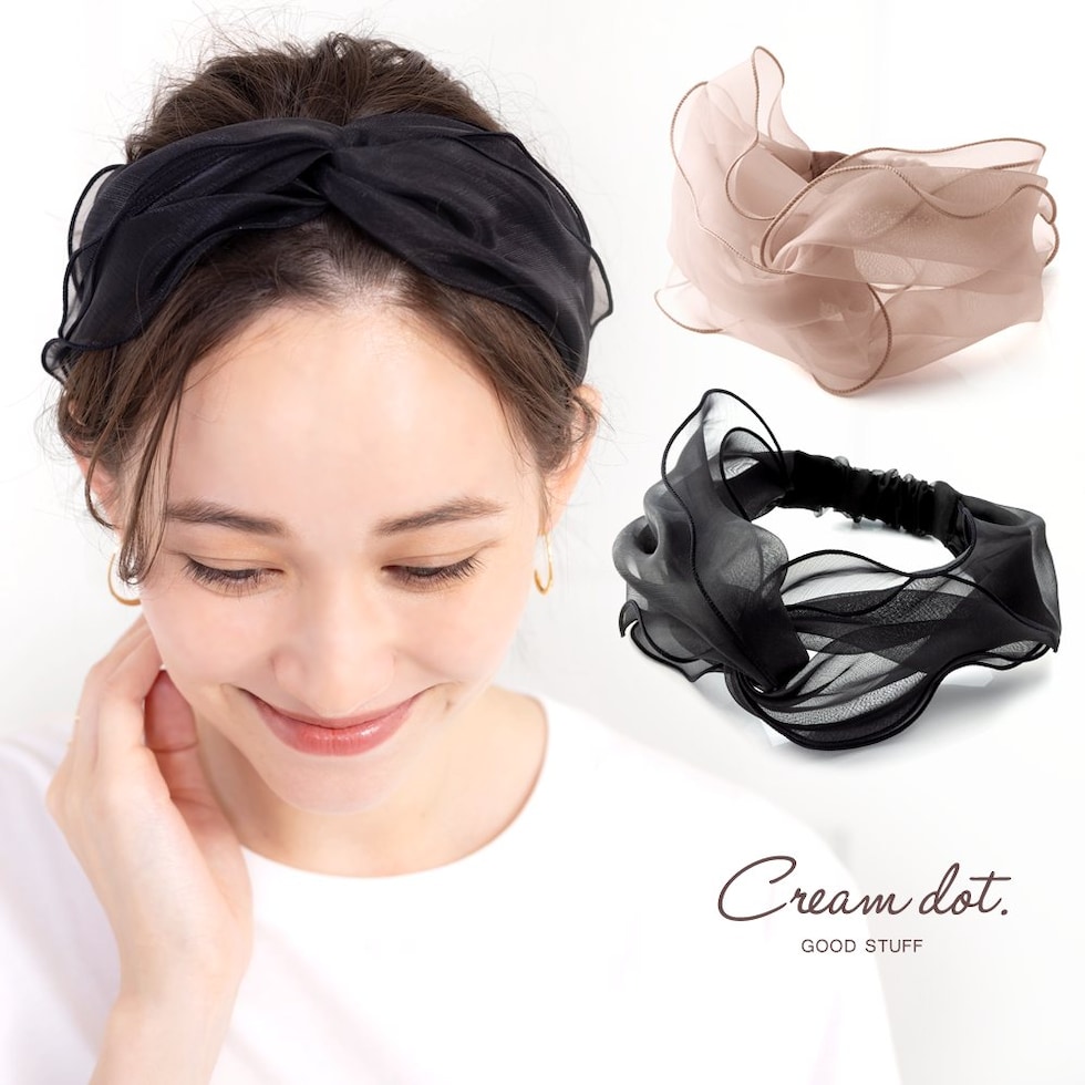 ヘアアクセサリー レディース ヘアターバン ヘアバンド 幅広 オーガンジー パイピング クロス ツイスト ワイド 透け感 cream dot ゆうパケット [ベージュ_ワンサイズ]