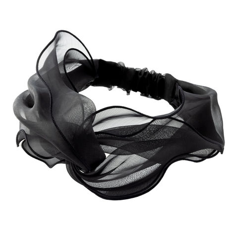 ヘアアクセサリー レディース ヘアターバン ヘアバンド 幅広 オーガンジー パイピング クロス ツイスト ワイド 透け感 cream dot ゆうパケット [ブラック_ワンサイズ]
