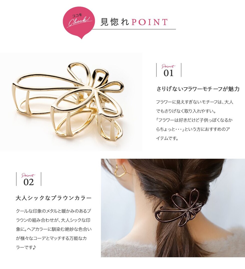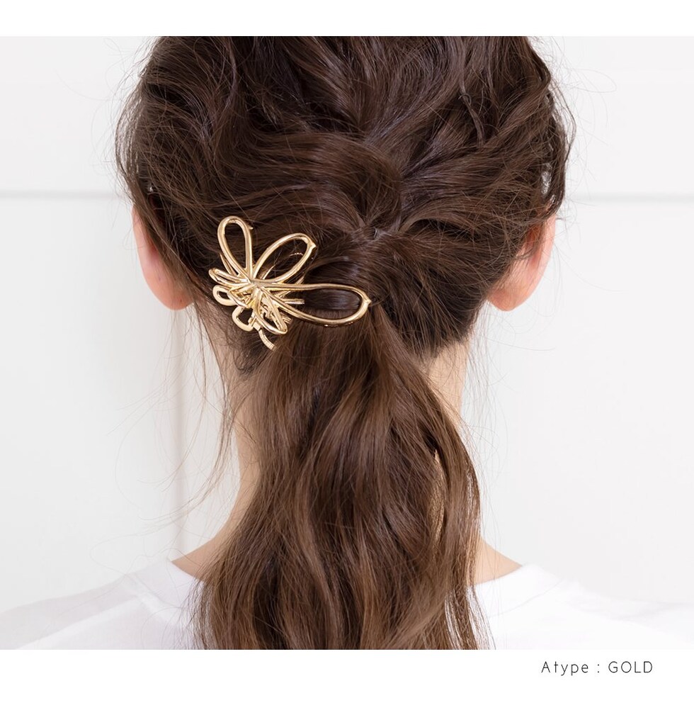 ヘアアクセサリー レディース バンスクリップ ヘアクリップ マット 艶消し 髪留め まとめ髪 フラワー メタルフレーム ヘアアレンジ ブラウン cream dot ゆうパケット [B:ゴールド_ワンサイズ]