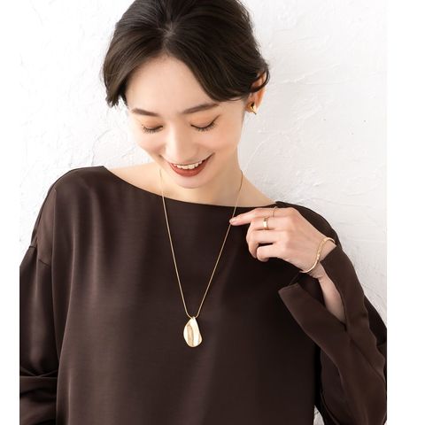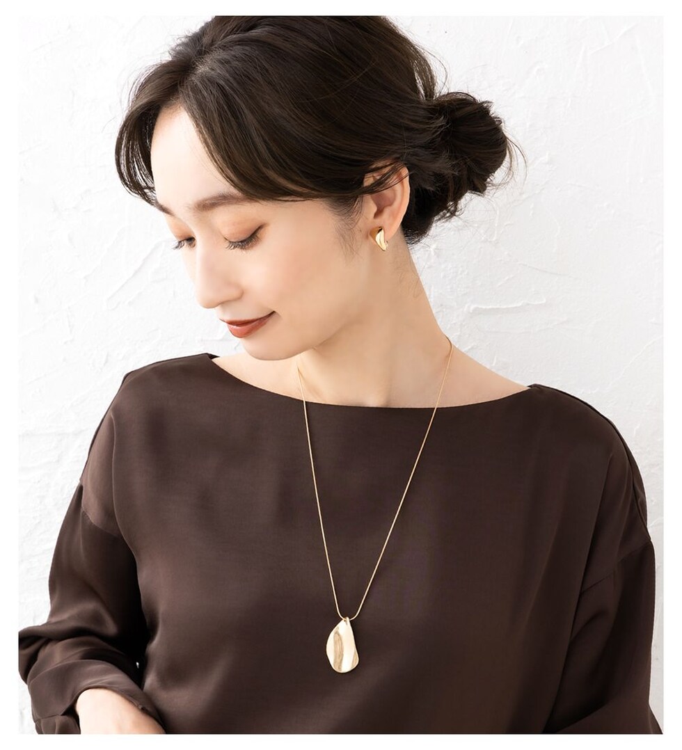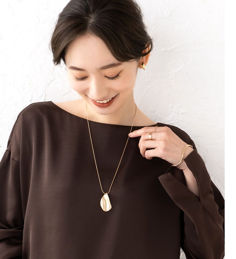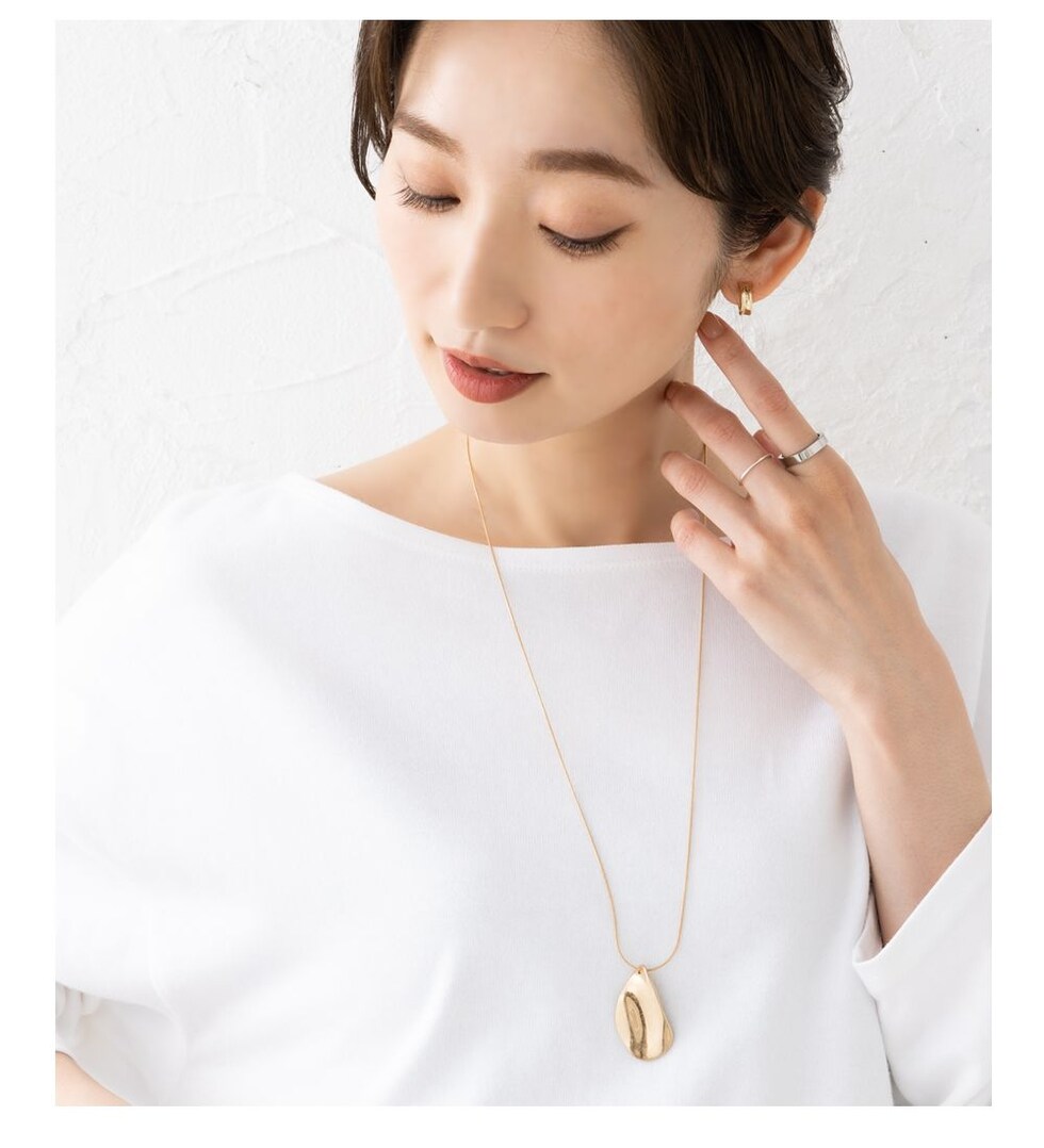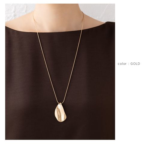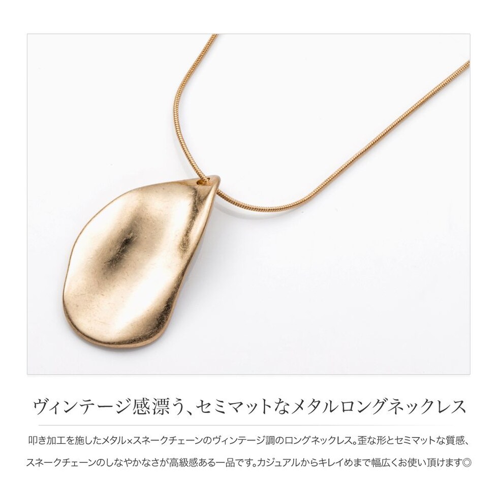 叩き加工を施したメタル×スネークチェーンのヴィンテージ調のロングネックレス。歪な形とセミマットな質感、スネークチェーンのしなやかなさが高級感ある一品です。カジュアルからキレイめまで幅広くお使い頂けます◎