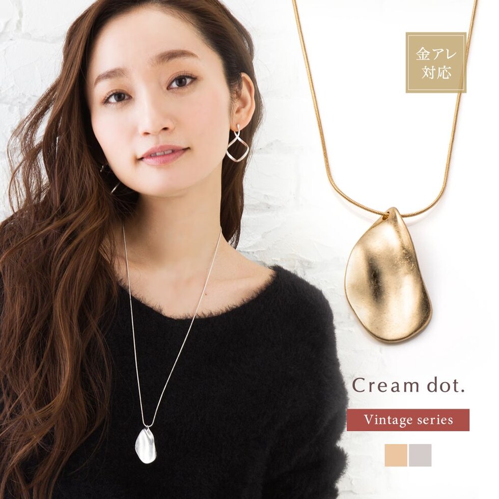 ネックレス 金属アレルギー ニッケルフリー レディース ロング 大ぶり スネークチェーン セミマット ヴィンテージ調 艶消し メタル たたき加工 変形 歪 cream dot ゆうパケット [ゴールド_ワンサイズ]