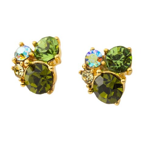 同系色のカラービジューをグラデーションになるよう配したパヴェ風デザインのスタッドイヤリング/ピアス。華やかに煌めくビジューとアクセントになるカラーが、いつものスタイリングをクラスアップしてくれます。